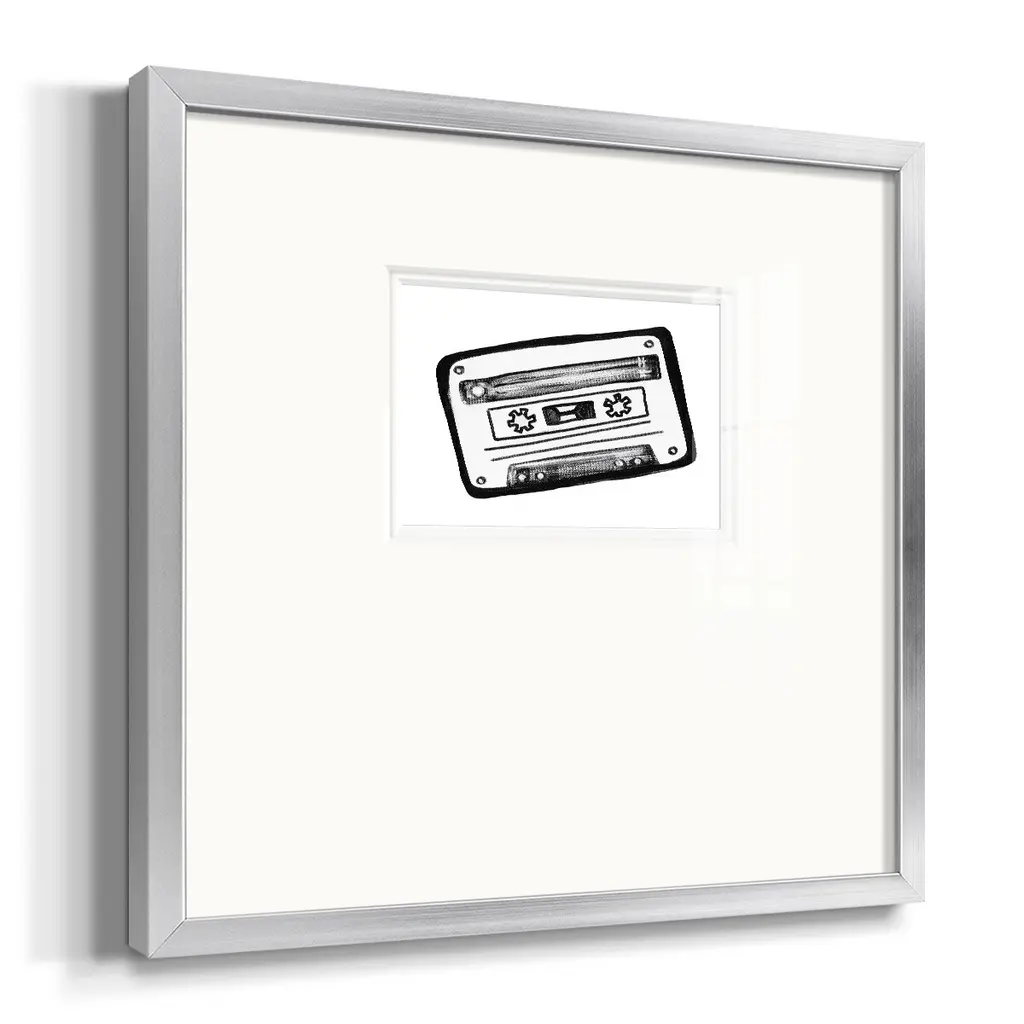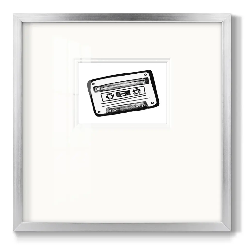 Cassette SketchPremium Framed Print A framed cold pressed paper print featuring superior double matting and quality frame. 2 SIZES AVAILABLE 16''X16''' - Overall Size 20''X20''' - Overall Size Each piece is made to order. Each piece comes with hanging hardware. Made in the USA Ready to Hang Giclee Paper Print Plexiglass Beveled Matt Board Double Matte Board