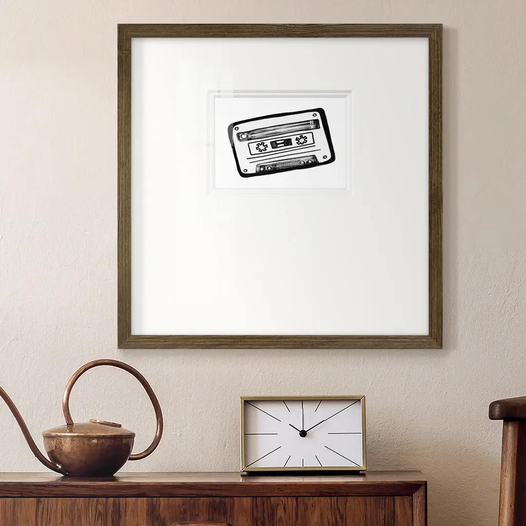 Cassette SketchPremium Framed Print A framed cold pressed paper print featuring superior double matting and quality frame. 2 SIZES AVAILABLE 16''X16''' - Overall Size 20''X20''' - Overall Size Each piece is made to order. Each piece comes with hanging hardware. Made in the USA Ready to Hang Giclee Paper Print Plexiglass Beveled Matt Board Double Matte Board