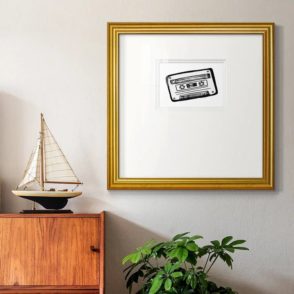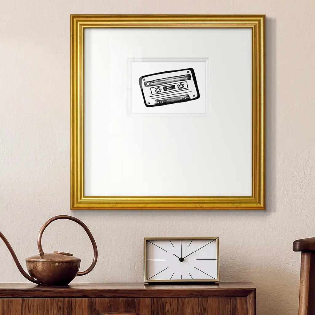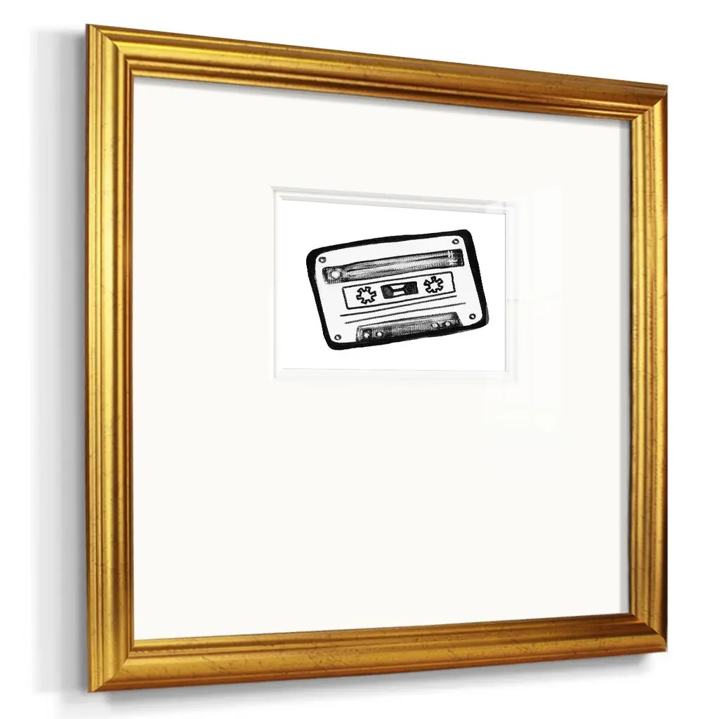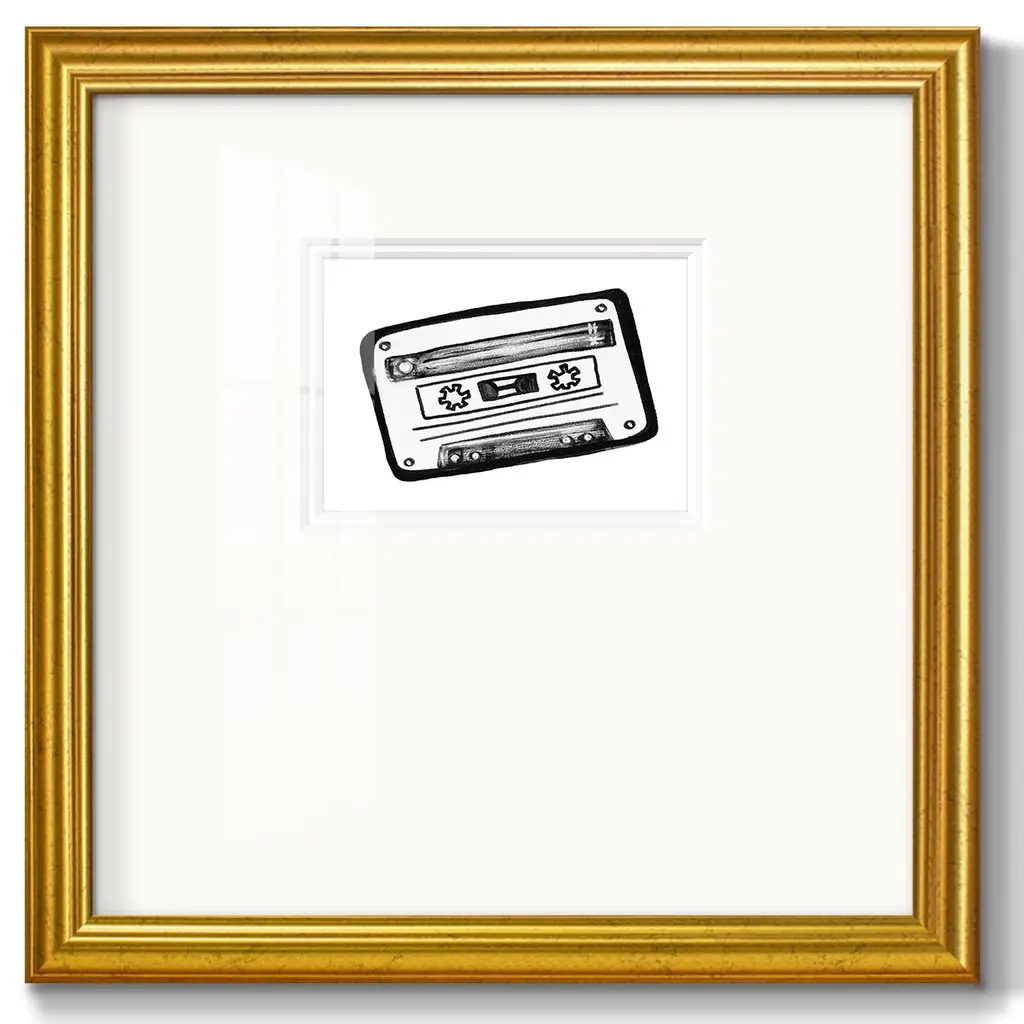 Cassette SketchPremium Framed Print A framed cold pressed paper print featuring superior double matting and quality frame. 2 SIZES AVAILABLE 16''X16''' - Overall Size 20''X20''' - Overall Size Each piece is made to order. Each piece comes with hanging hardware. Made in the USA Ready to Hang Giclee Paper Print Plexiglass Beveled Matt Board Double Matte Board