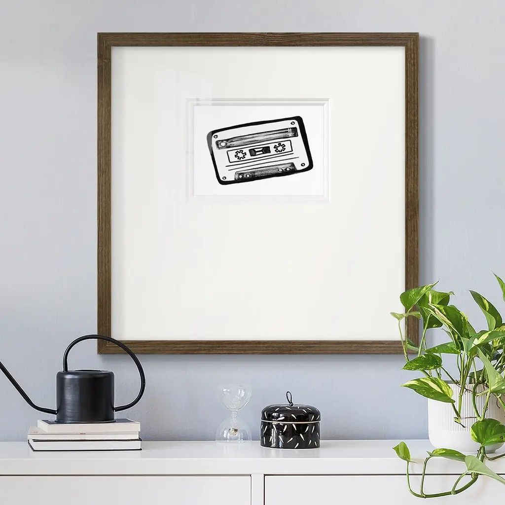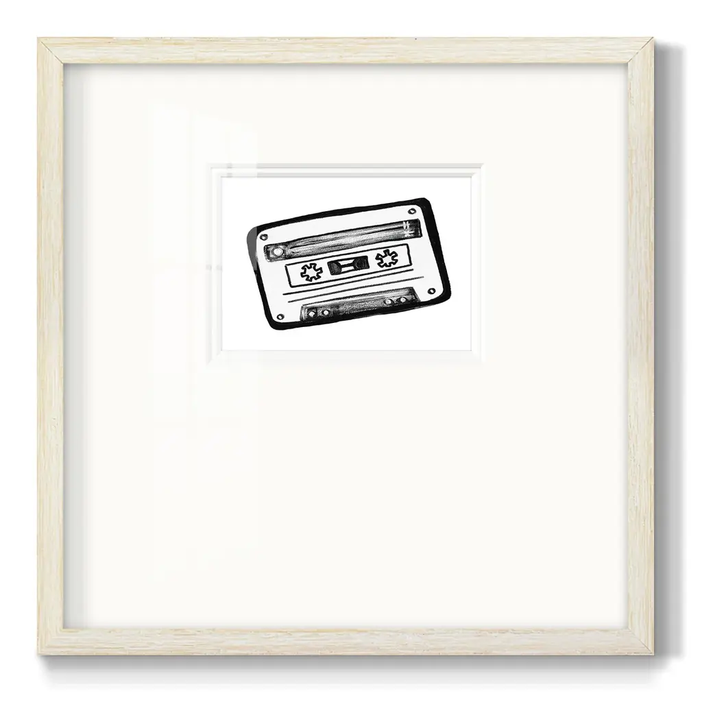 Cassette SketchPremium Framed Print A framed cold pressed paper print featuring superior double matting and quality frame. 2 SIZES AVAILABLE 16''X16''' - Overall Size 20''X20''' - Overall Size Each piece is made to order. Each piece comes with hanging hardware. Made in the USA Ready to Hang Giclee Paper Print Plexiglass Beveled Matt Board Double Matte Board