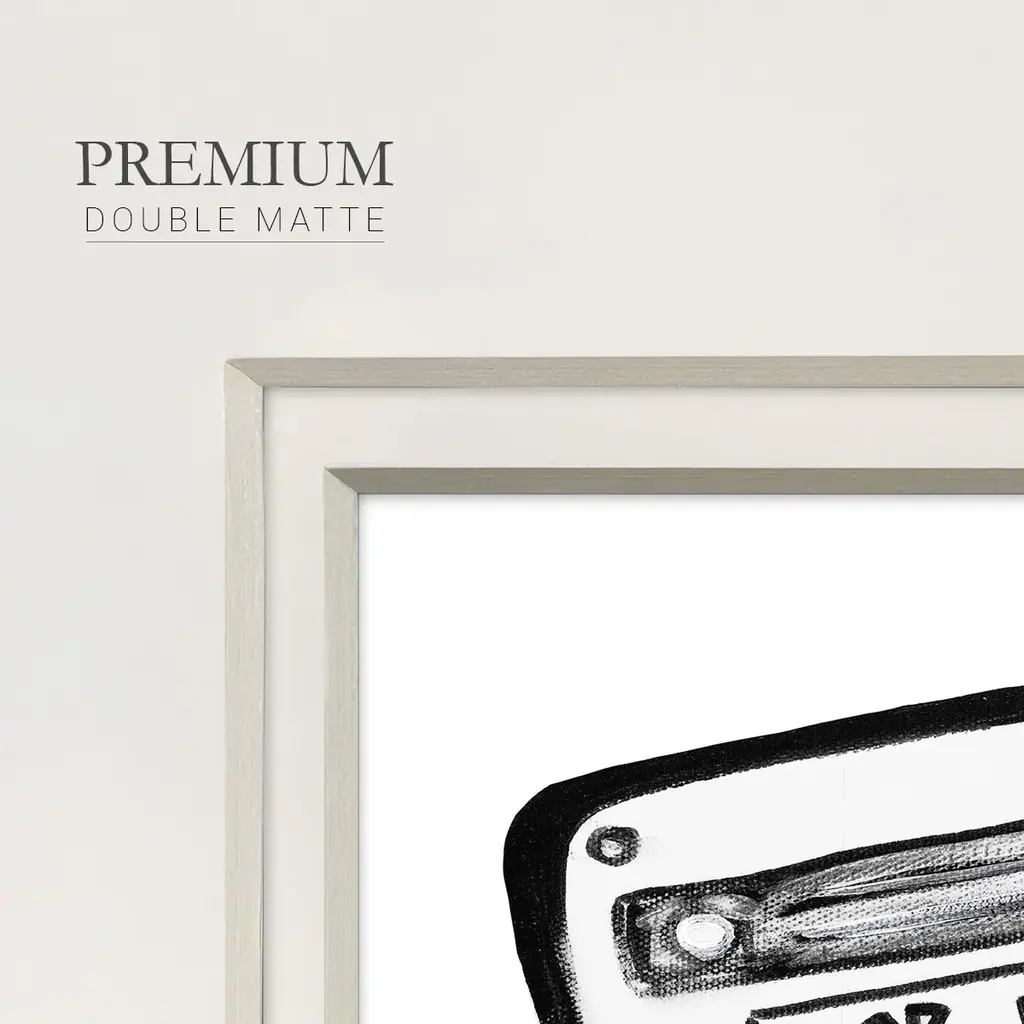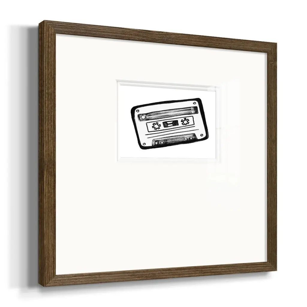 Cassette SketchPremium Framed Print A framed cold pressed paper print featuring superior double matting and quality frame. 2 SIZES AVAILABLE 16''X16''' - Overall Size 20''X20''' - Overall Size Each piece is made to order. Each piece comes with hanging hardware. Made in the USA Ready to Hang Giclee Paper Print Plexiglass Beveled Matt Board Double Matte Board