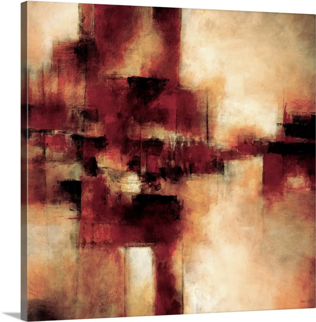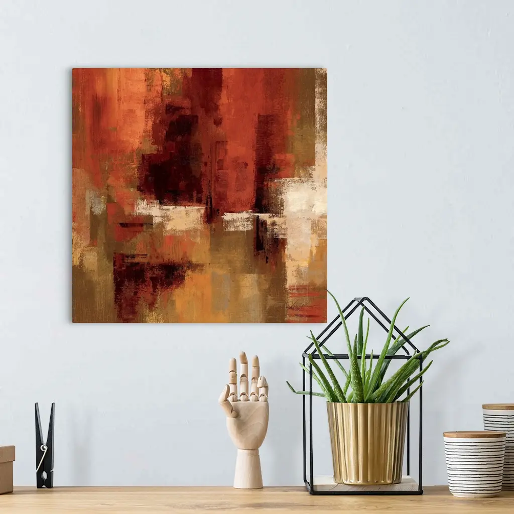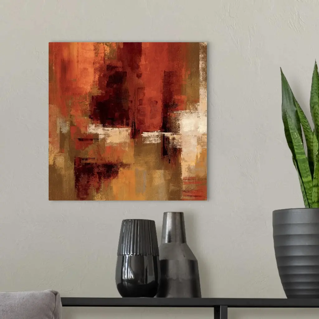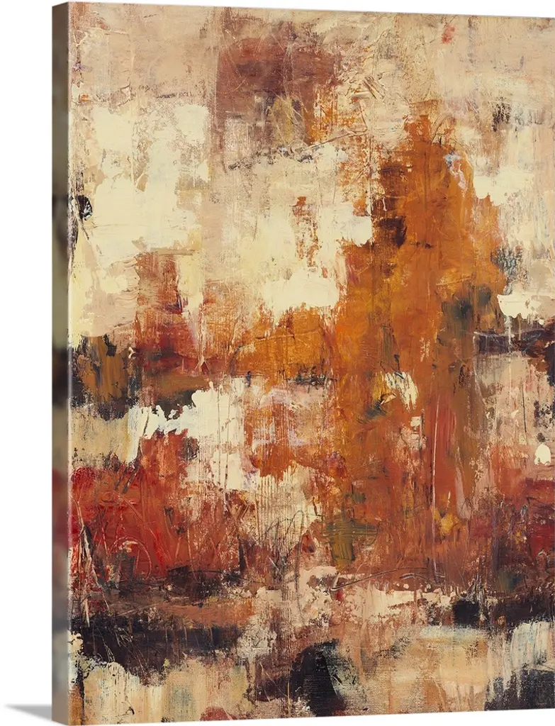 An abstract piece of art with brush strokes of earthy tones giving the painting depth.