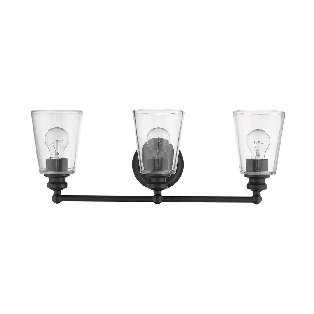 With a clean, transitional design and encompassing light, the Castara Vanity Light by Artcraft is a welcome addition to any home. A rectangular metal backplate affixes to the piece to the wall and supports a slender beam. Glassware-inspired shades are held along the piece, each one containing a bulb that emits soft light. The curvaceous glass complements the smooth metal of its framework and lends a more traditional touch to this versatile fixture.