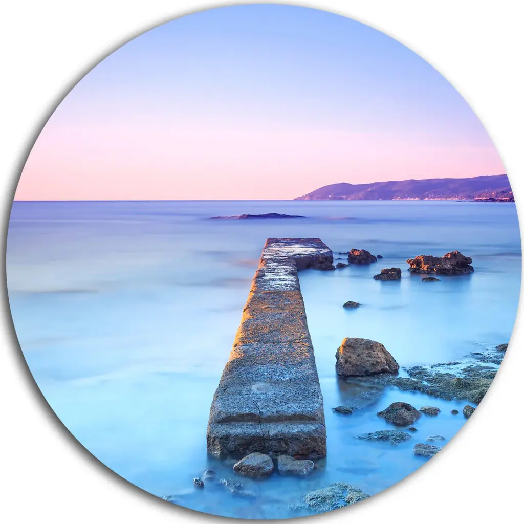 Bring Contemporary Abstraction to your home with this large Circle Metal wall art. This Castiglioncello Bay Concrete Pier Metal Artwork makes it the focal point of any room or office. - White Gloss Coating ensures colors are extra vibrant with light reflection.- Aluminum grade Sheet Metal with 1 inch mounting frame on the back giving the illusion that the artwork is floating on the wall..- Mounting Brackets are included along with instructions.- High Quality Digital images are created directly into a glossy aluminum panel producing a stunning and captivating print into the glossy finish of the metal.- Water, Fire and Scratch resistant HD Aluminum panels.- Looks better than any photo paper and guaranteed to last at least 20 years- Easy to clean with a microfiber cloth. Colors are far superior to regular Canvas Art. - Easy to Hang