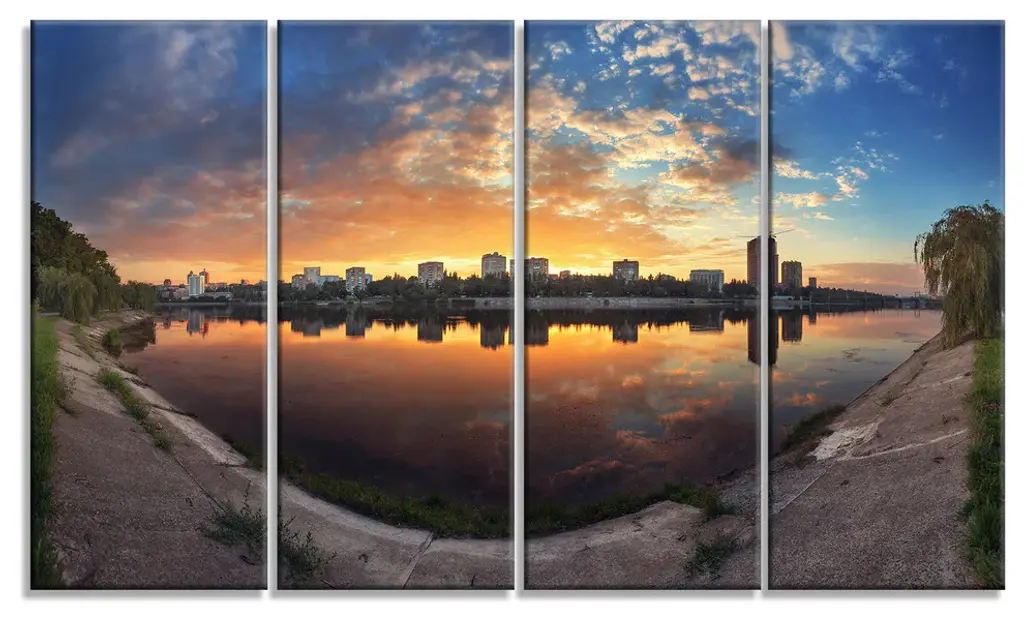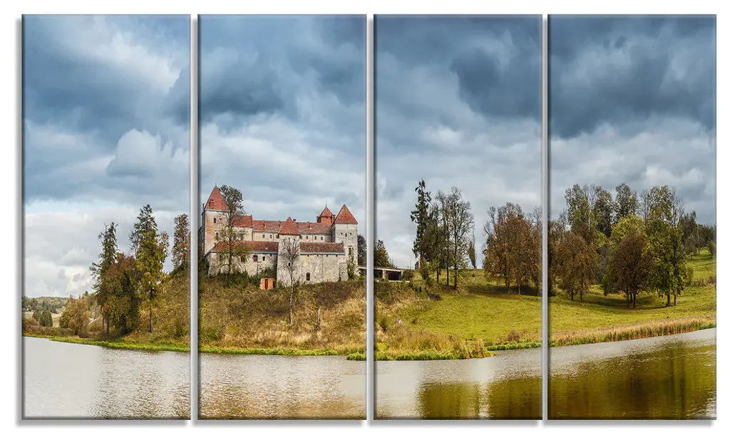 "Castle By The Lake" Canvas Print, 4 Panels, 48"x28"