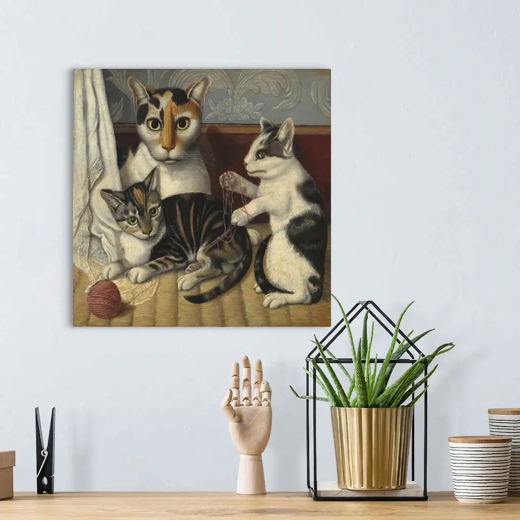 Cat And Kittens, By Anonymous, C. 1872-83, American Painting