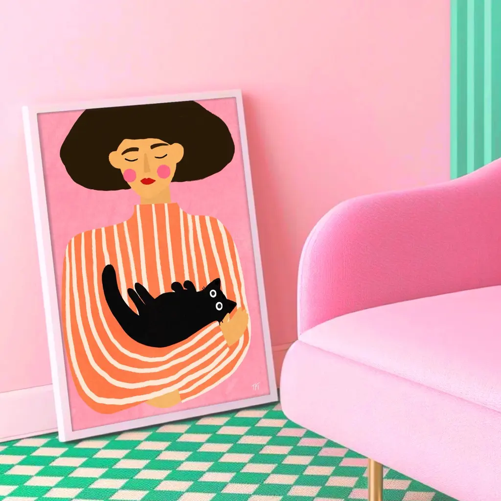 Cat Cuddles - Art Print -MediumIllustrated by Maria. This print is perfect for all cat lovers alike! Printed in the U.K.Printed on premium matte, fine art, archival paperPaper weight: 230 gsmSold without a frame.