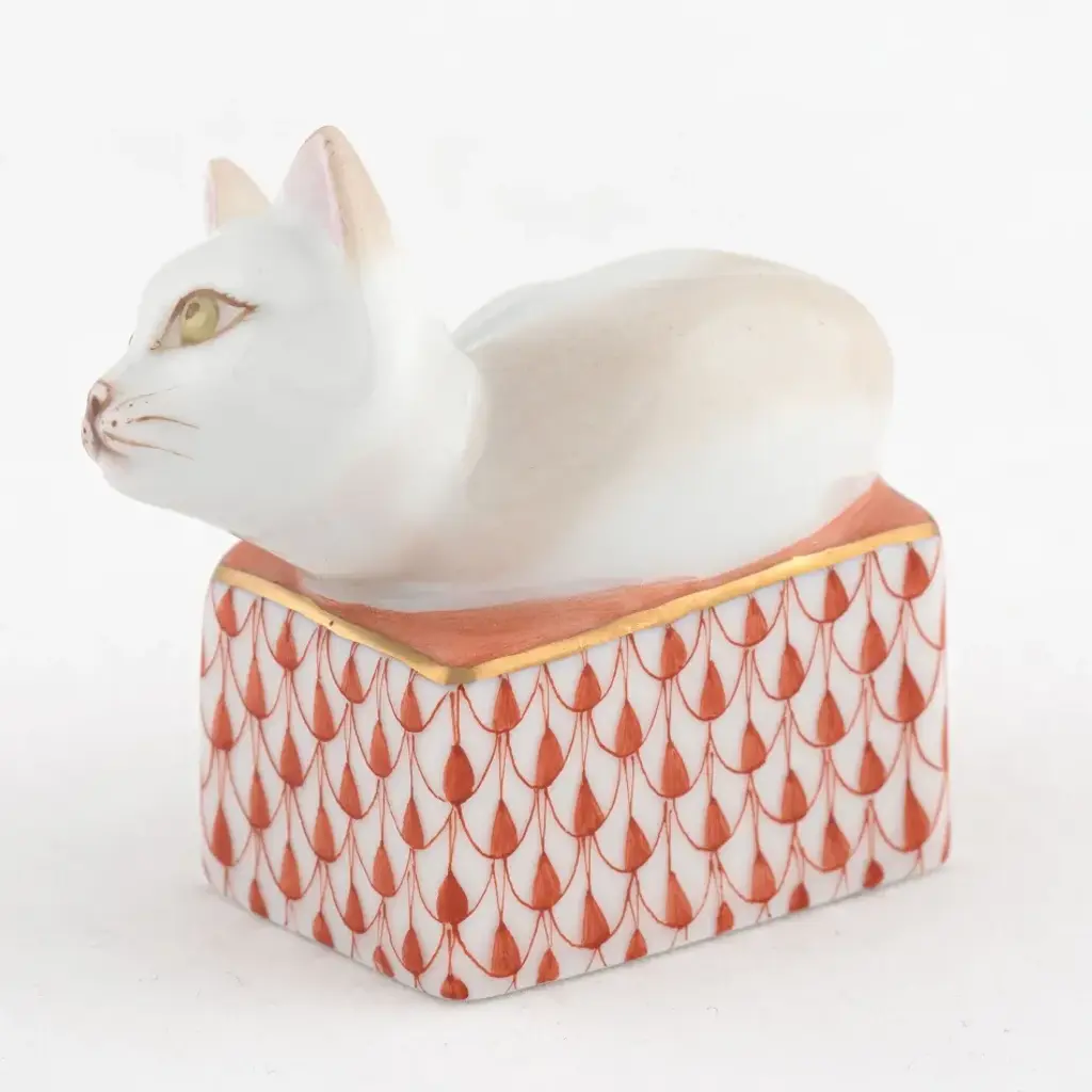 Endearing animals meek and bold, large and small, demure and majestic eagerly await the chance to melt your heart and warm your home. Each is brought to life by the skilled hands of artisans crafting and painting these charming porcelain creatures. The famous fishnet decor adorning many of the animals took form in 1858 when a Herend painter became inspired by a fishscale design he saw on a Chinese porcelain plate and painted a similar pattern onto a rooster figurine to imitate feathers. The rest is history, with the fishnet design now a Herend signature prized worldwide. Now the biggest porcelain manufactory in Europe, Herend was founded in 1826 to produce earthenware in the small Hungarian village for which it was named. At the time, Hungary was flooded with low-cost pottery, but in 1839, Mor Fischer became the Manufactory’s new owner and he decided to focus on producing dinnerware replacement pieces for Europe’s royal families to complement their valuable porcelain patterns from Germany and the Far East. As his client base grew, Fischer commissioned his artists to begin designing dinnerware patterns of their own. Queen Victoria’s 1851 purchase of a large set for Windsor Castle was a milestone, setting the stage for aristocrats throughout Europe to clamor for Herend in their estates. In the 1850s, Herend added meticulously-crafted figurines to its creations. Herend’s trademark fishnet pattern, which is widely recognized and prized as Herend’s signature design, started in 1858 when an artist who was intrigued with a Chinese plate’s fish scale design painted it onto a rooster figurine to imitate feathers.