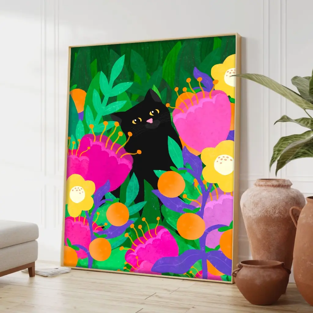 Cat In The Wild - Art Print - LargeIllustrated by Maria. This print is perfect for all cat lovers alike! Printed in the U.K.Printed on premium matte, fine art, archival paperPaper weight: 230 gsmSold without a frame.