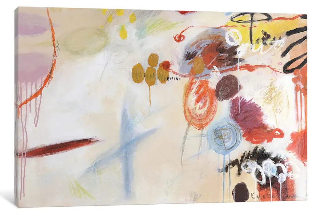 The artwork is crafted with 100-percent cotton artist-grade canvas, professionally hand-stretched and stapled over pine-wood bars in gallery wrap style - a method utilized by artists to present artwork in galleries. Fade-resistant archival inks guarantee perfect color reproduction that remains vibrant for decades even when exposed to strong light. Add brilliance in color and exceptional detail to your space with the contemporary and uncompromising style of iCanvas. Orientation : Horizontal Shape : Rectangle Artist : Kyoko Fischer Height : 26 Width : 18Thickness : 1.5Product Type :Gallery wrapped canvas artNew :Ready to be displayed right out of the box, including free hanging accessories and instructions for a quick and easy hanging process that achieves the best positioning results.Quality Wood Bars :Shrink-resistant wooden-bar frame with tensioning wedges that allow for tightening of the canvas from the reverse side.Dependent and Fast:Produced by the largest US canvas art supplier.