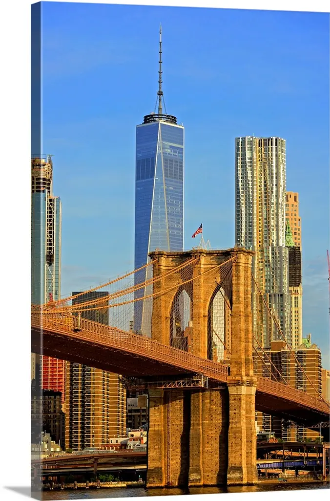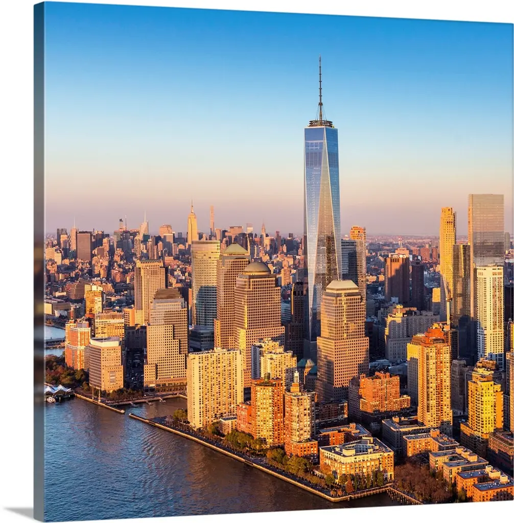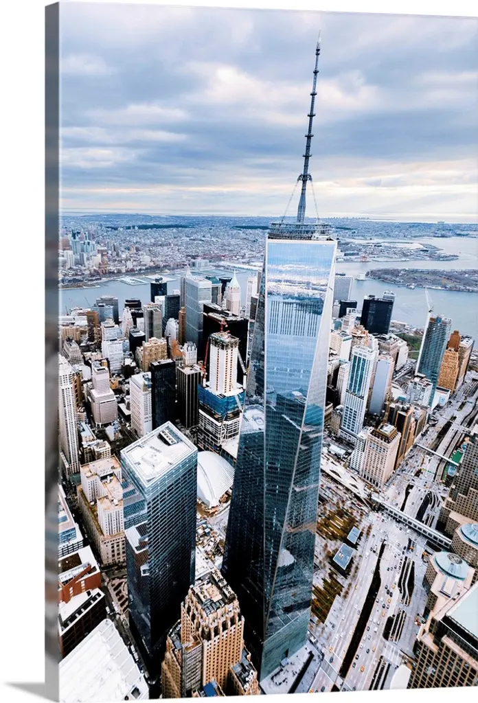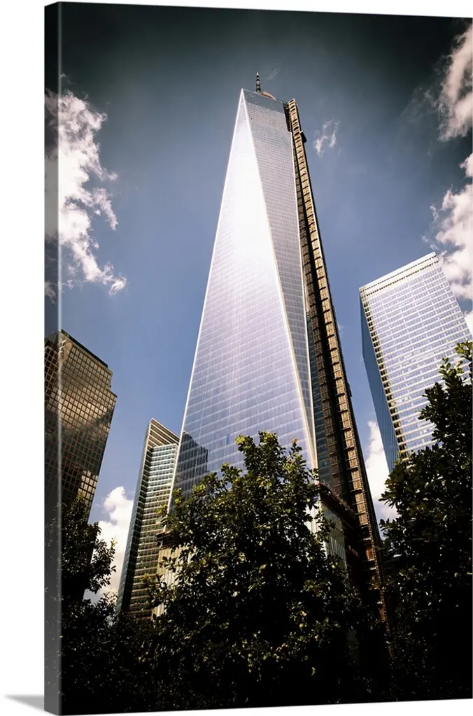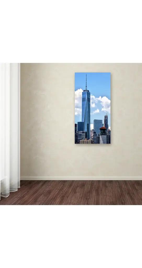 Artist: CATeyesSubject: LandscapesStyle: ContemporaryProduct Type: Gallery-Wrapped Canvas ArtMade in USAThis ready to hang, gallery-wrapped art piece features One World Trade Center, also known as the Freedom Tower, located in New York City.Mitch (aka CATeyes) Catanzaro is a freelance photographer. He has sold thousands of images to a wide variety of customers. His work has been purchased by several online travel companies, international advertising and marketing corporations, as well as individual clients.Giclee (jee-clay) is an advanced printmaking process for creating high quality fine art reproductions. The attainable excellence that Giclee printmaking affords makes the reproduction virtually indistinguishable from the original piece. The result is wide acceptance of Giclee by galleries, museums, and private collectors. Gallery wrap is a method of stretching an artist's canvas so that the canvas wraps around the sides and is secured a hidden, wooden frame. This method of stretching and preparing a canvas allows for a frameless presentation of the finished painting.Canvas: 100% Cotton, Stretcher Bars: Poplar