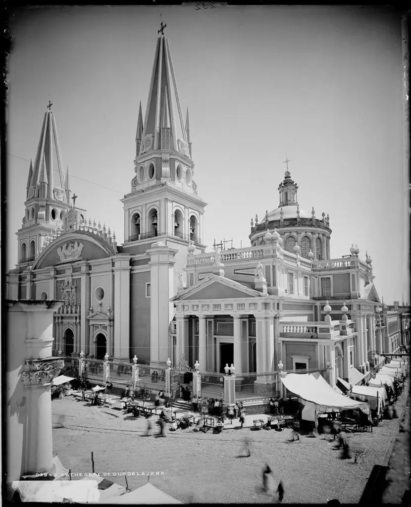 Cathedral of Guadalajar, photographed by William Henry Jackson for the Detroit Publishing Company between 1880 and 1897 on 8x10 glass plate negative.