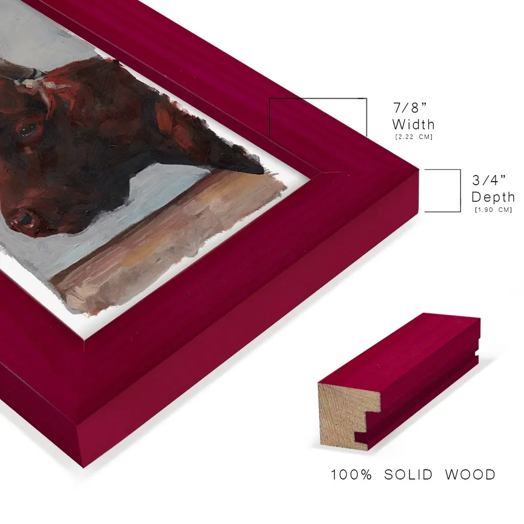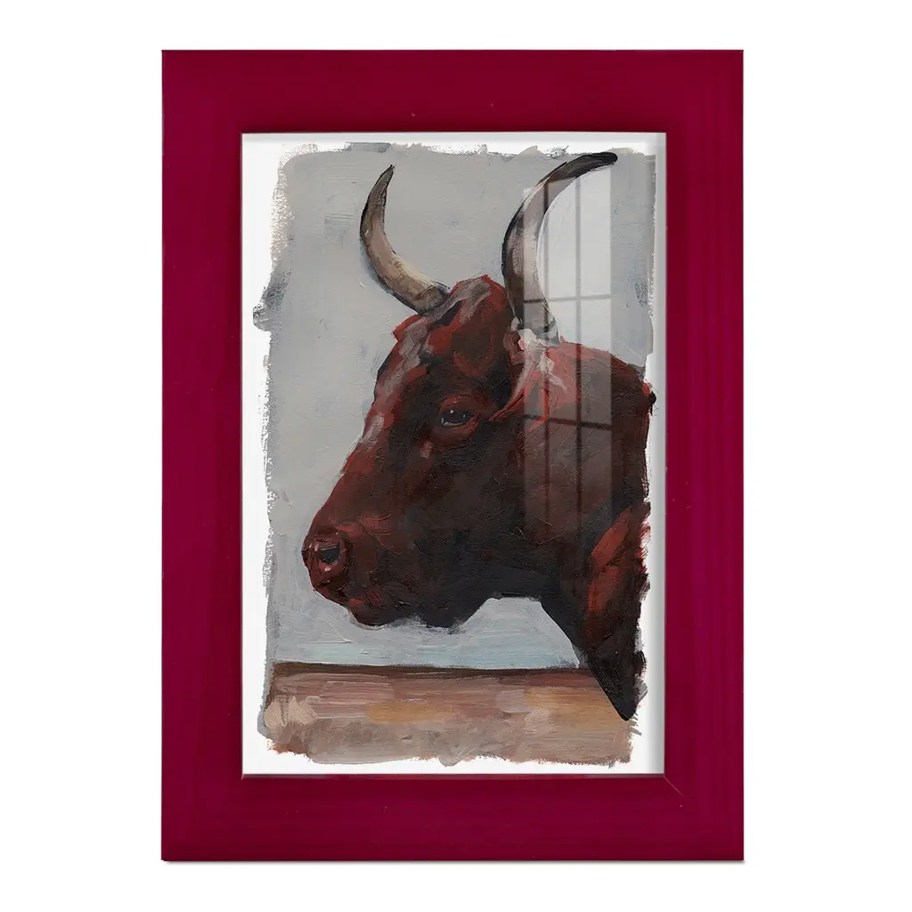 Cattle View I -EZ SWITCH Framed Print w/glass-Cherry Red A delightful, framed print. Featuring a solid wood frame with real wood glass. This premium print is giclee quality. In addition, every frame features a removable back and table top stand. This allows you to change your art in the future or to just stand the art on a table for a new look. We are sure you'll enjoy our new series of EZ SWITCH Framed Art. Solid Wood Frame Real Glass Removable / Replaceable Art Built in Tabletop Stand Sizes range from 4x6 up to 12x15 - buy just one or pair them up as sets as you see fit.