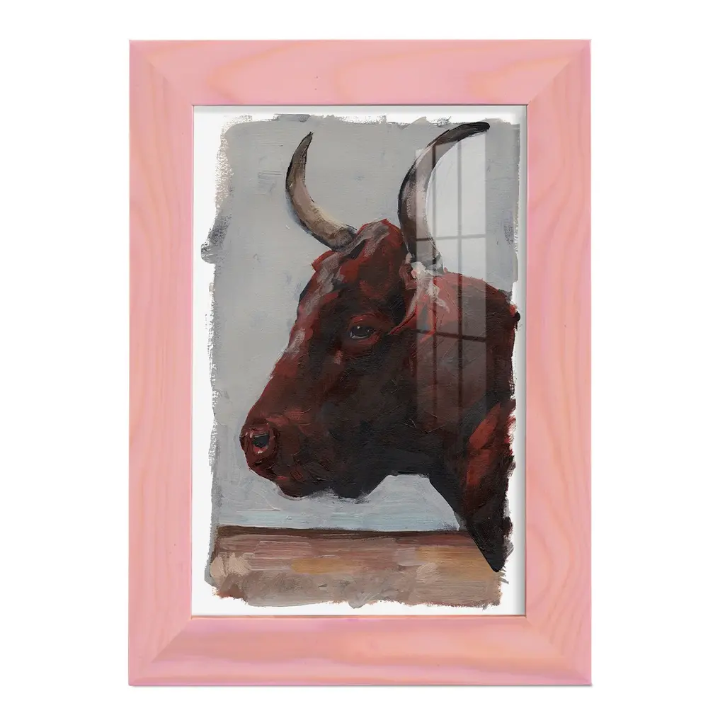 Cattle View I -Framed Print W/glass-Cherry Red - 12x15 - Pink