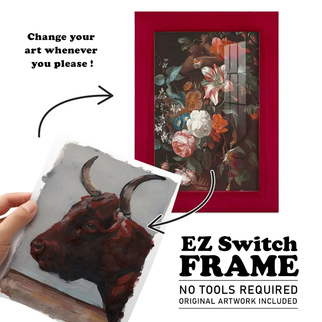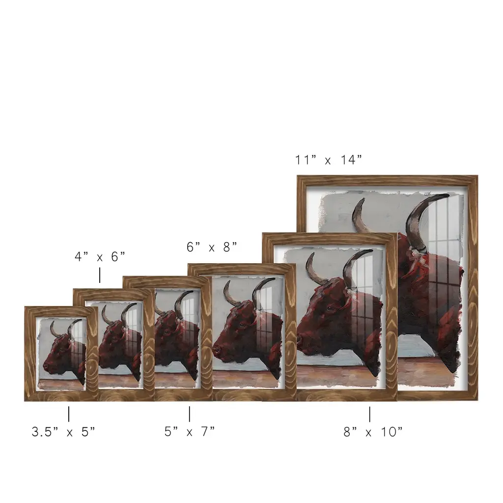 Cattle View I -EZ SWITCH Framed Print w/glass-Cherry Red A delightful, framed print. Featuring a solid wood frame with real wood glass. This premium print is giclee quality. In addition, every frame features a removable back and table top stand. This allows you to change your art in the future or to just stand the art on a table for a new look. We are sure you'll enjoy our new series of EZ SWITCH Framed Art. Solid Wood Frame Real Glass Removable / Replaceable Art Built in Tabletop Stand Sizes range from 4x6 up to 12x15 - buy just one or pair them up as sets as you see fit.