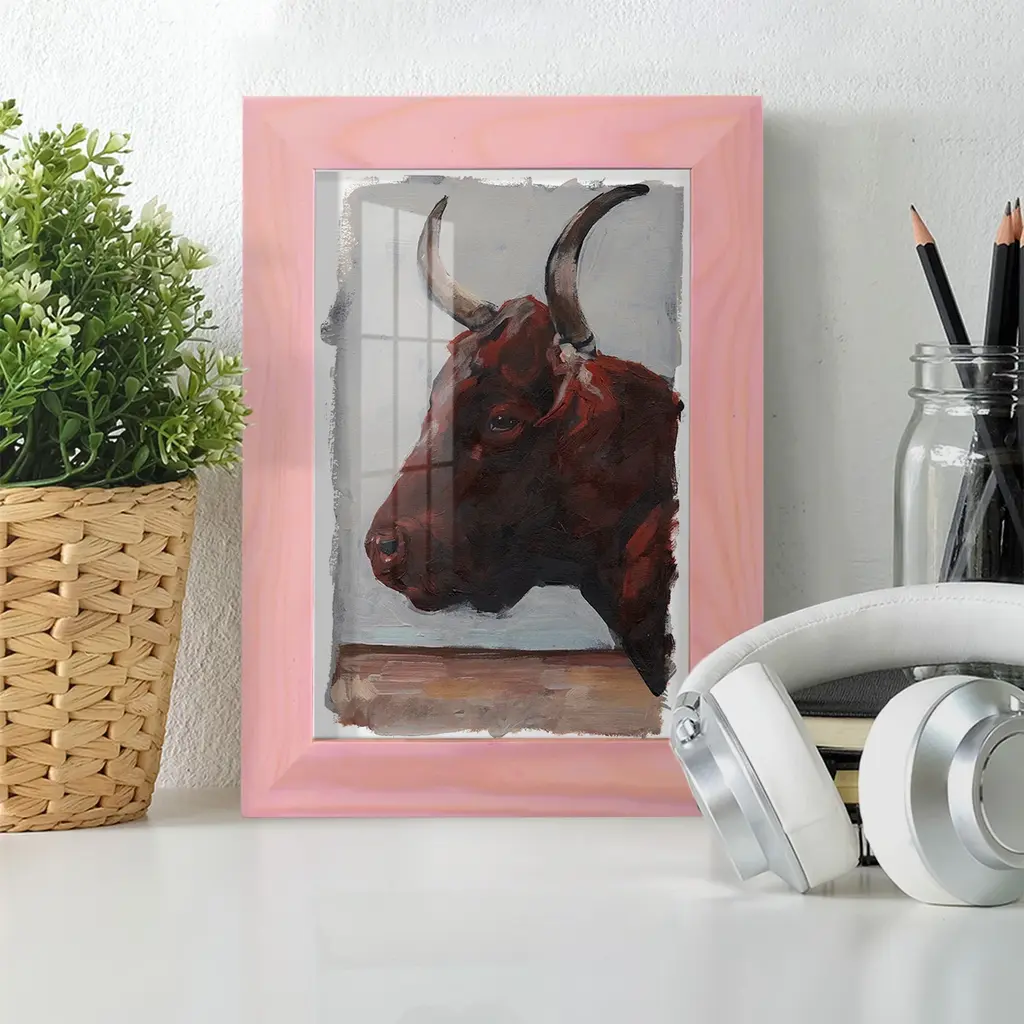 Cattle View I -Framed Print W/glass-Cherry Red - 4X6 - Blue