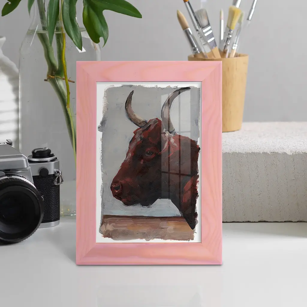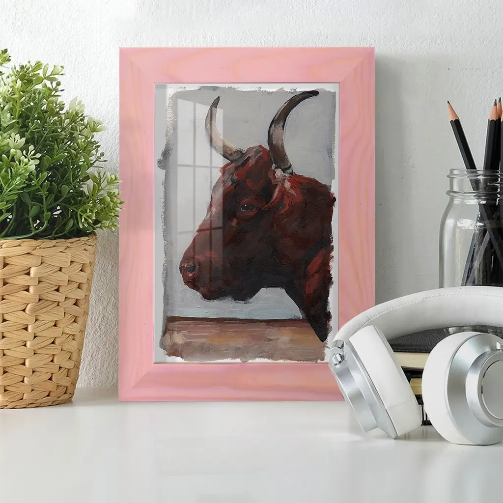 Cattle View I -Framed Print W/glass-Cherry Red - 4X6 - Natural