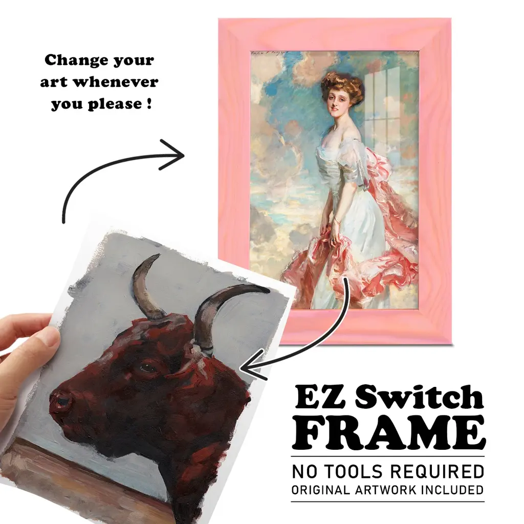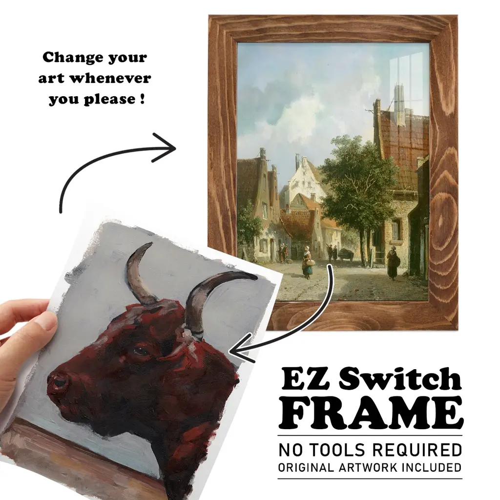Cattle View I -EZ SWITCH Framed Print w/glass-Cherry Red A delightful, framed print. Featuring a solid wood frame with real wood glass. This premium print is giclee quality. In addition, every frame features a removable back and table top stand. This allows you to change your art in the future or to just stand the art on a table for a new look. We are sure you'll enjoy our new series of EZ SWITCH Framed Art. Solid Wood Frame Real Glass Removable / Replaceable Art Built in Tabletop Stand Sizes range from 4x6 up to 12x15 - buy just one or pair them up as sets as you see fit.