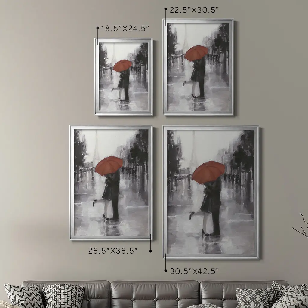 Caught in the Rain Premium Framed Print - Ready to Hang A Premium Framed Print created to last. Framed in distressed wood and available in an array of sizes and colors Featuring a beveled a solid wood stretcher bar, each piece comes ready to hand 4 SIZES AVAILABLE 30.5''X42.5'' - Overall Size 26.5'X36.5'' - Overall Size 22.5''x30.5'' - Overall Size 18.5''x24.5'' - Overall Size Each piece is made to order. Each piece comes with hanging hardware. Made in the USA Ready to Hang