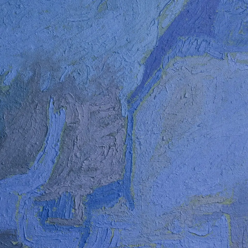 Based in Austin, Texas, abstract-expressionist painter Tyler Guinn looks to texture and organic sensibility to shape his wide variety of works, from geometric pieces and flowing landscapes to mark making and automatic writing. Matte canvas is float mounted with pins on a flax linen backer. If not currently in stock, this texture-enhanced piece ships within three weeks. Handmade in Austin, Texas.