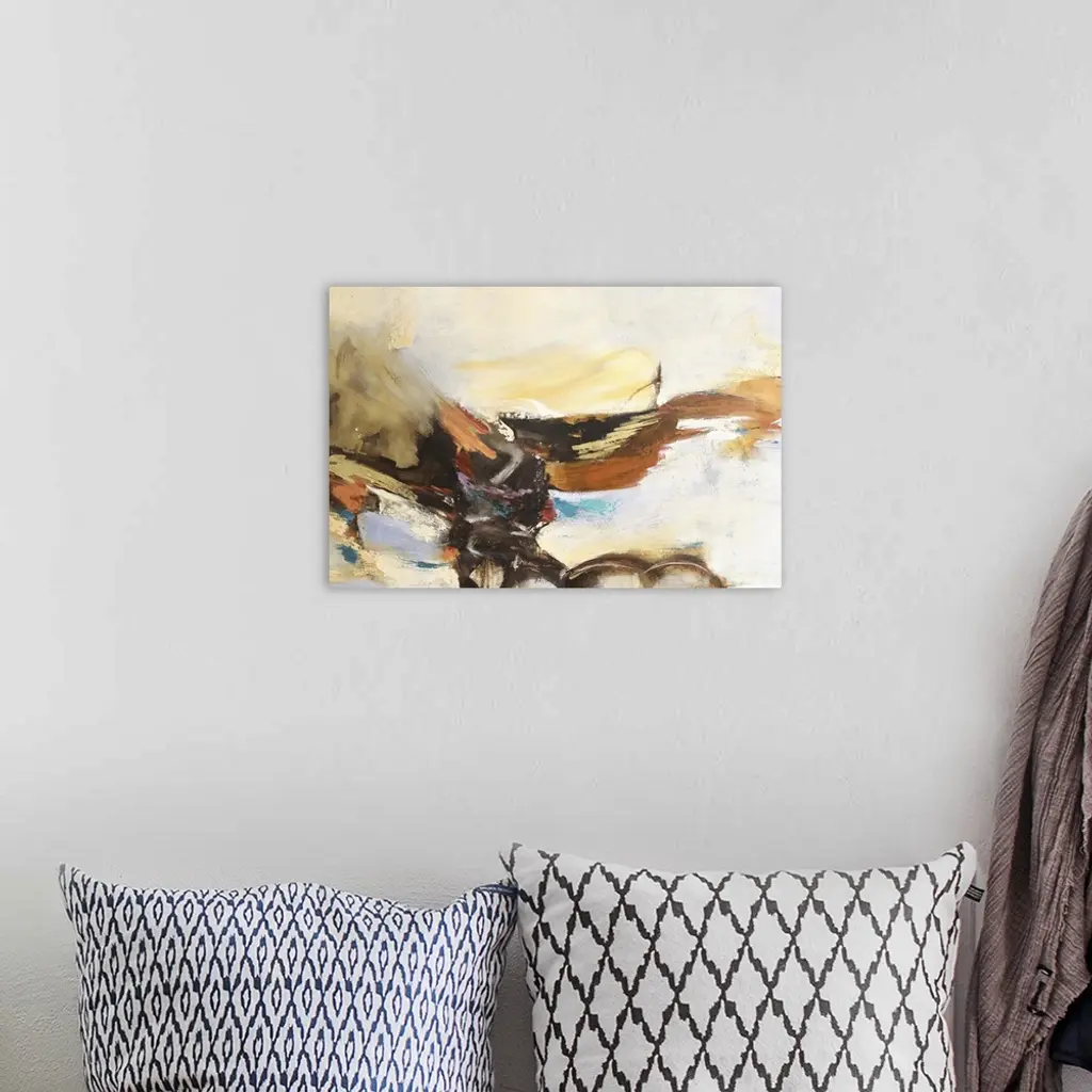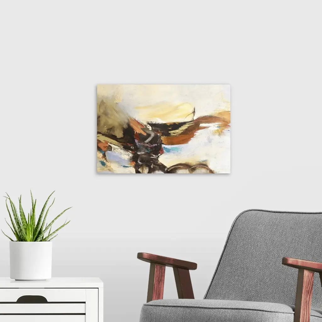 Sweeping brush strokes flow through this warm toned abstract artwork.