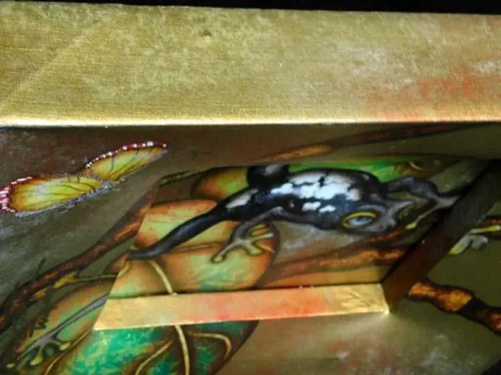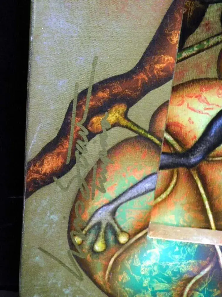 "Cautious" HR1103 by Luis Sottil Original Limited Edition Naturalismo on Canvas Hand Signed by the Artist Medium: Naturalismo Art Size: 17" x 17" Edition Number: 30/40 or 36/40 Condition: Mint 100 percent guarantee of authenticity Luis Sottil: Born in Mexico City, and raised in Tampico, Sottil offers an appreciation of nature in an art form he calls Naturalismo Sottil combines a rich coat of gold leaf that serves as a background to each painting, and natural pigments such as minerals, mother-of-pearl, vegetable roots, and rare Cochilla beetle shell found only in Mexico to create his blend of natures innocence and romantic sophistication. Sottil's paintings and prints offer an uncomplicated positive message- nothing is as beautiful or as important as nature.