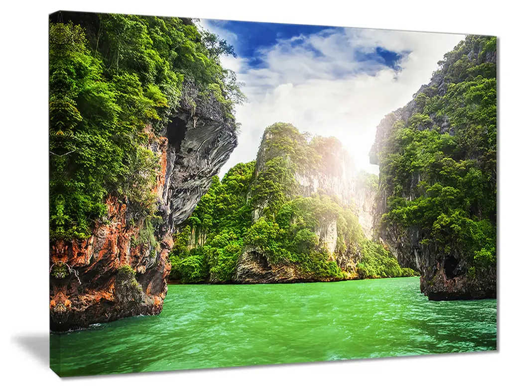 The Cave Rocks on Railay Beach canvas art print is sure to make an impression on anyone who sees it. This artwork is gallery wrapped around a 1-inch solid wood frame and arrives carefully packaged and entirely ready to hang on the wall. Design Art only uses the highest resolution and pigments to ensure a crisp colorful print that is never faded or pixelated. This artwork is sure to be a conversation starter in any home or office.