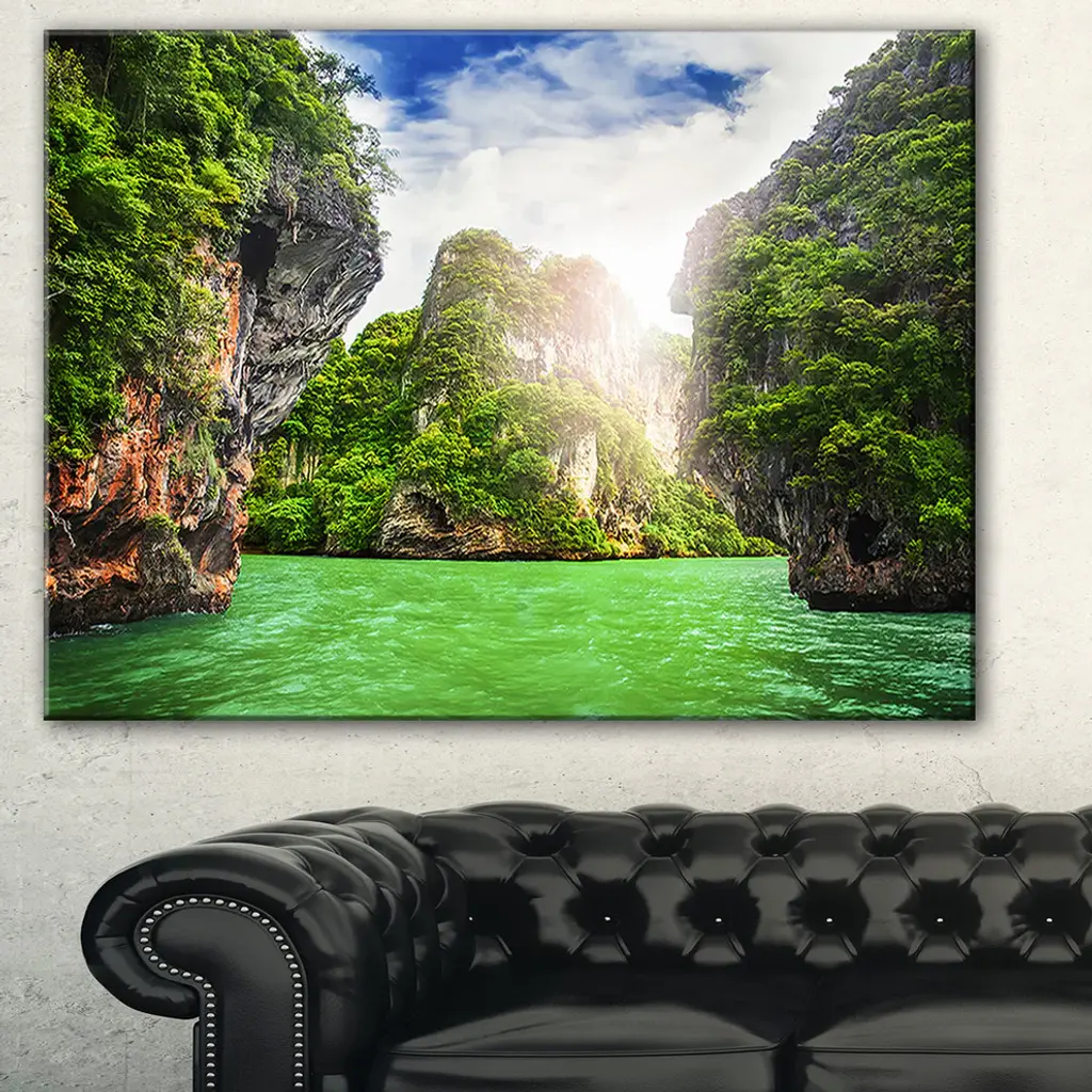The Cave Rocks on Railay Beach canvas art print is sure to make an impression on anyone who sees it. This artwork is gallery wrapped around a 1-inch solid wood frame and arrives carefully packaged and entirely ready to hang on the wall. Design Art only uses the highest resolution and pigments to ensure a crisp colorful print that is never faded or pixelated. This artwork is sure to be a conversation starter in any home or office.