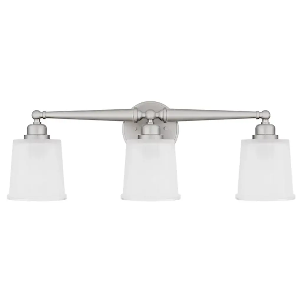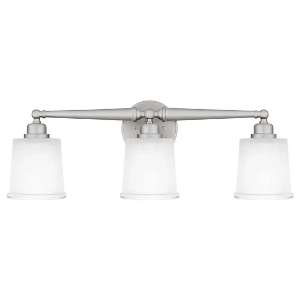 Bask in the soft, gentle illumination cast by the Cecilia Vanity Light from Quoizel. With a classic silhouette and refined finish options, Cecilia effortlessly synchronizes with various decor styles. Designed with versatility in mind, this damp-listed fixture seamlessly bridges transitional aesthetics, ensuring it harmonizes with any bathroom ambiance. Crafted from durable steel and featuring clear sandblasted glass shades, the design provides both functionality and elegance. The glass softens direct light in exchange for a welcoming warmth, offering a sophisticated lighting solution for any vanity space.