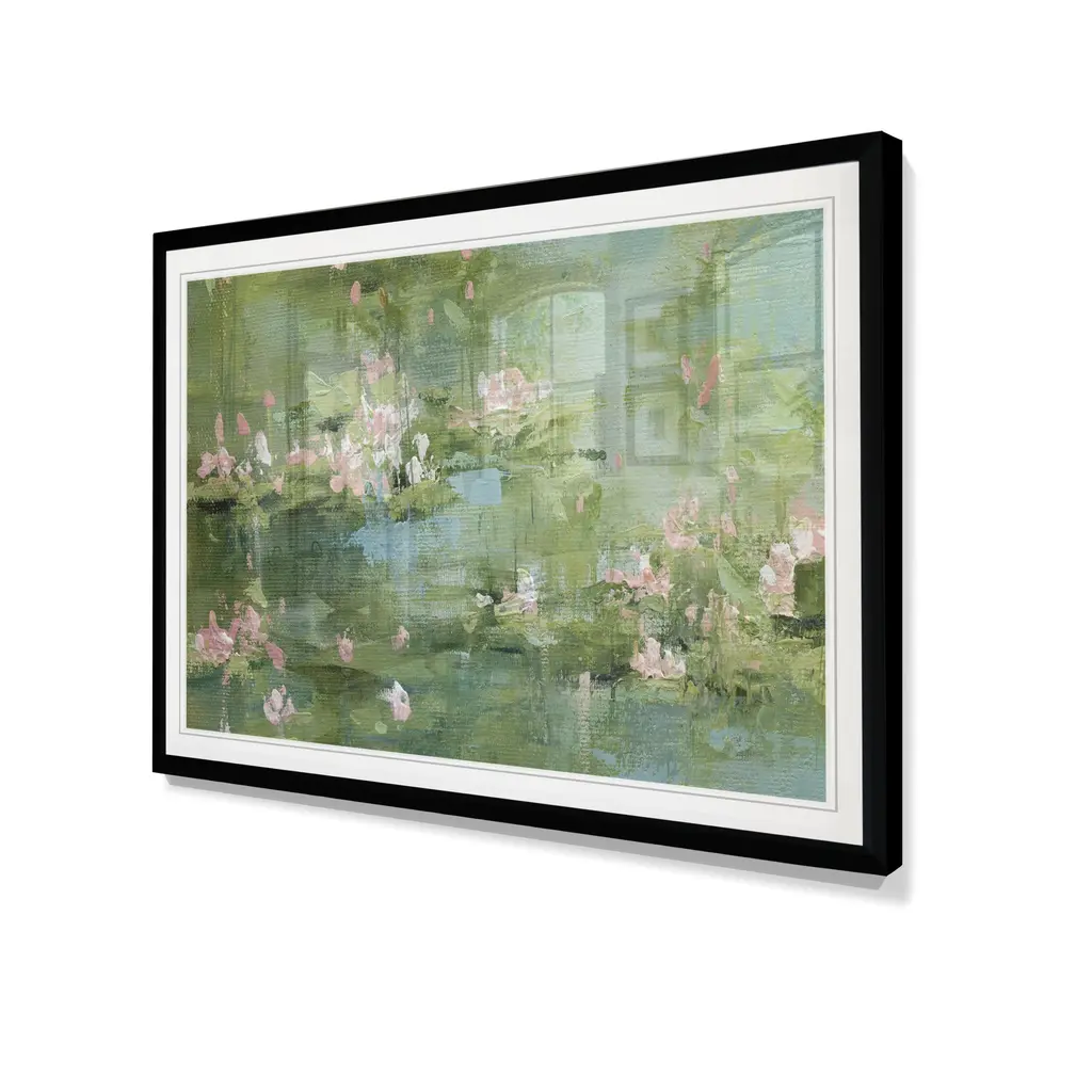 Celadon Waterlilies I-Framed Giclee Print A premium framed giclee print Printed using the last archival inks. Each print is carefully printed and framed by hand. Each piece features a 2'' Beveled matt board, acrylic glass and comes ready to hand. 4 SIZES AVILABLE 18''X24''- Overall Size 22''x30''- Overall Size 26''x26''' - Overall Size 30''x42''' - Overall Size ** Overall size may vary slightly from piece to piece Each piece is made to order. Built to Last Each piece comes ready to hang Archival Ink 2'' Matt Board Assembled by hand in the America