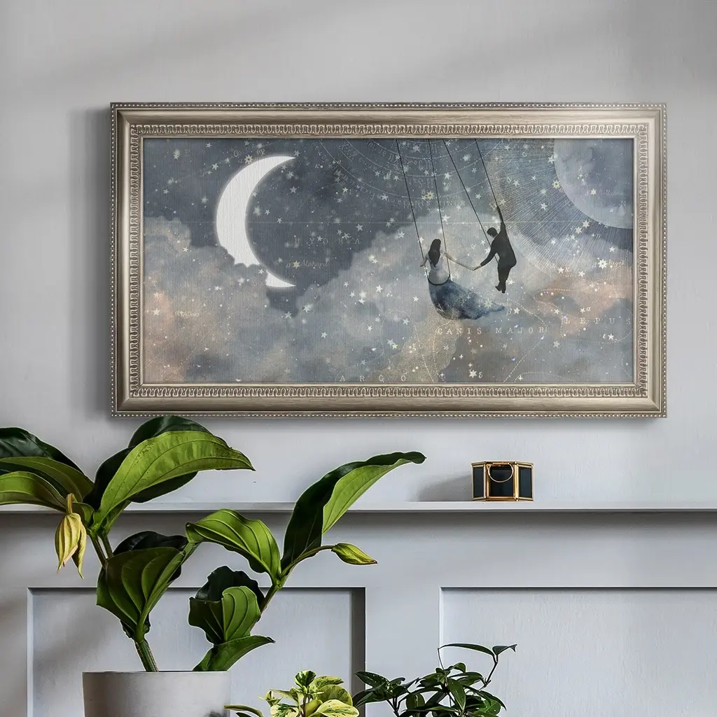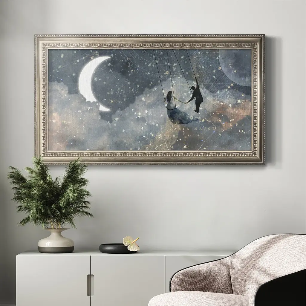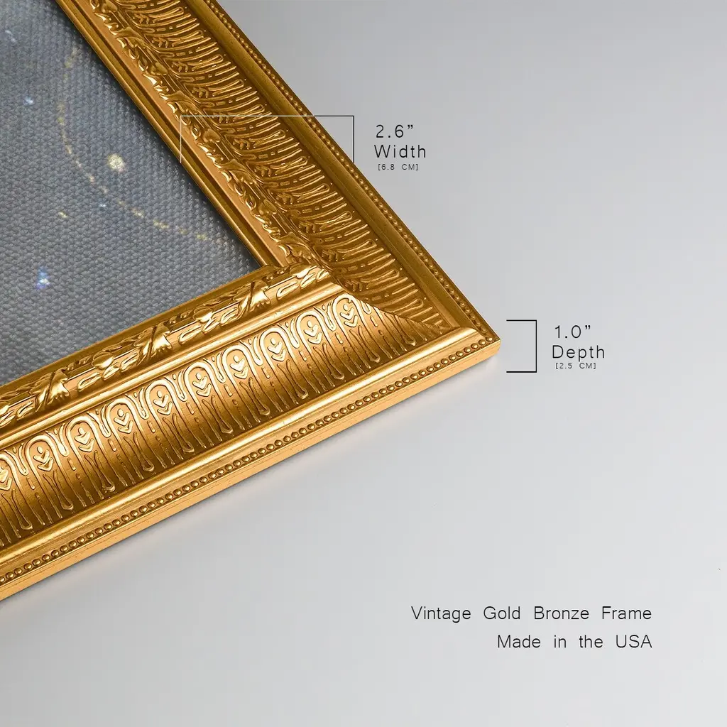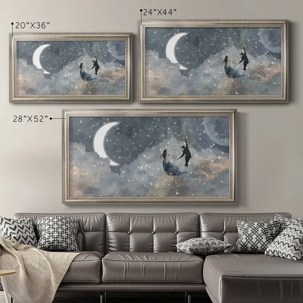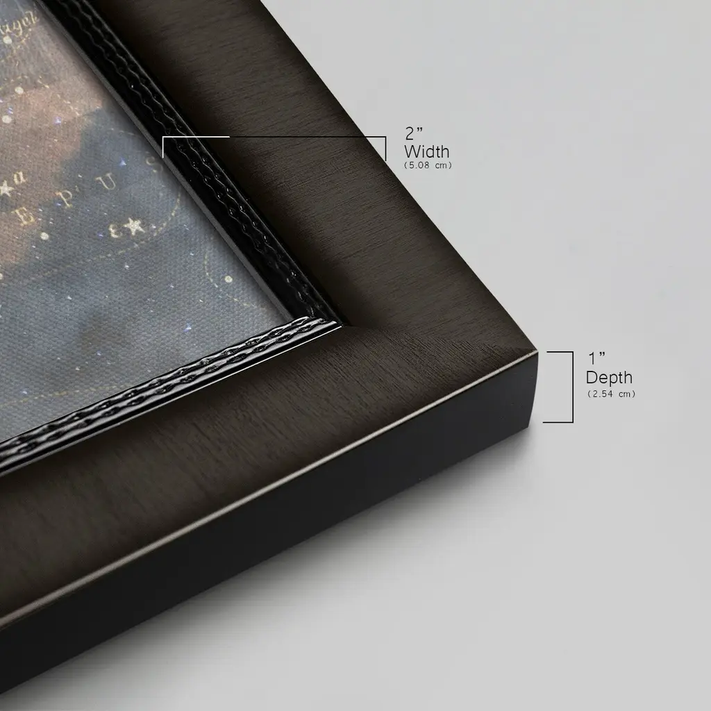 Celestial Love Collection D Premium Framed Canvas- Ready to Hang A Premium Framed Canvas created to last. Framed in distressed wood and available in an array of sizes and colors Featuring a beveled a solid wood stretcher bar, each piece comes ready to hand 3 SIZES AVAILABLE 21''X37'' - Overall Size 25''X45'' - Overall Size 29''x53'' - Overall Size Each piece is made to order. Each piece comes with hanging hardware. Made in the USA Ready to Hang Giclee Paper Print Acrylic Glass Beveled Matt Board