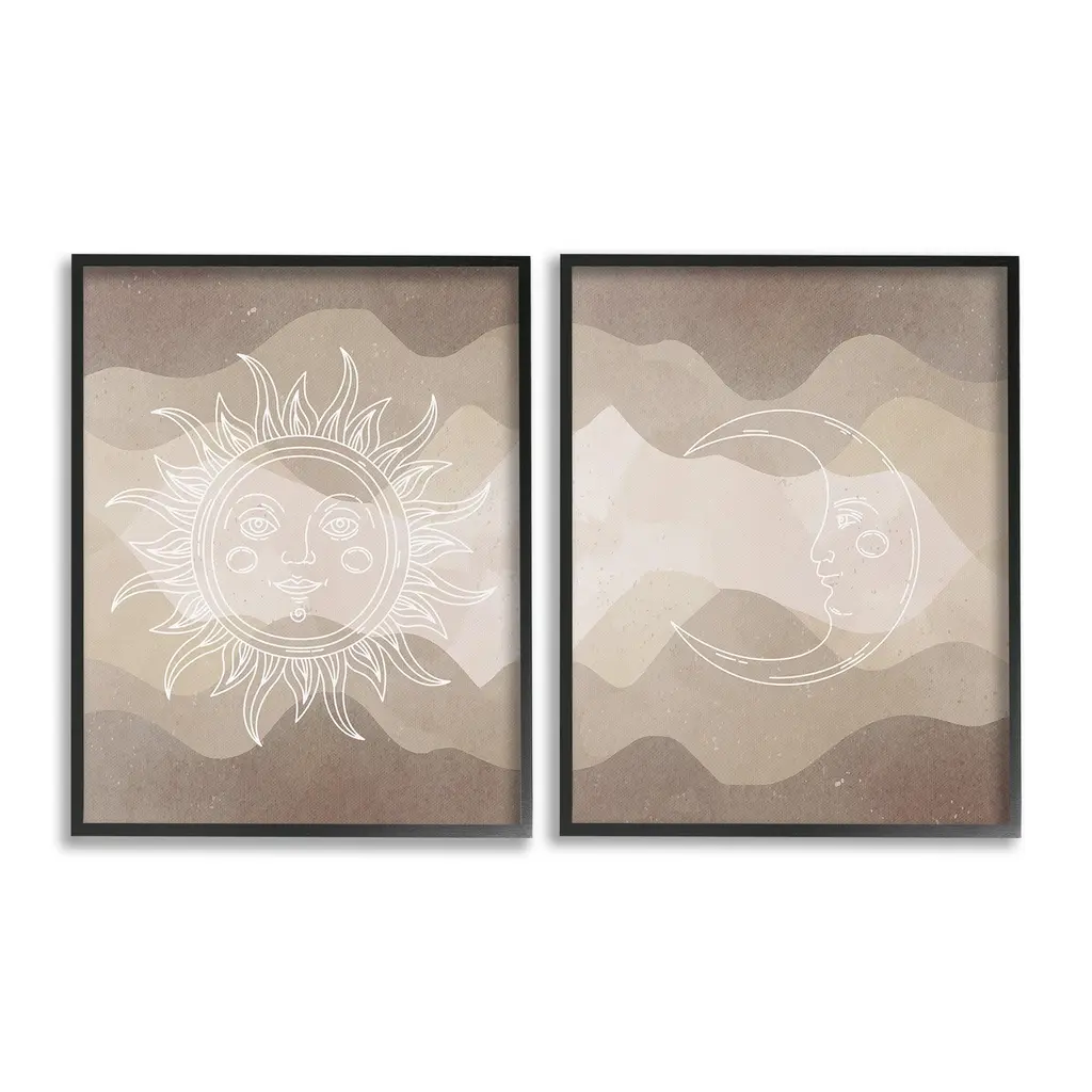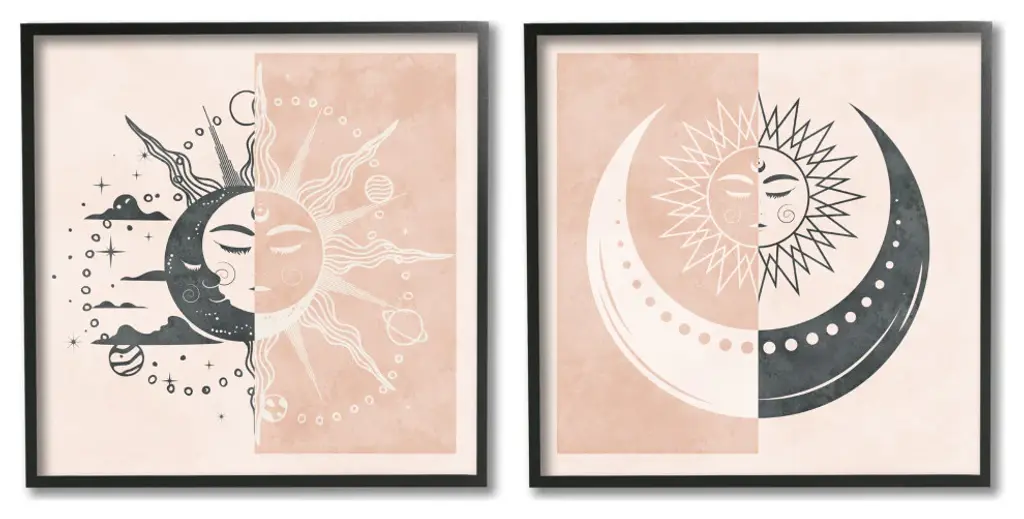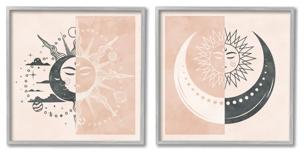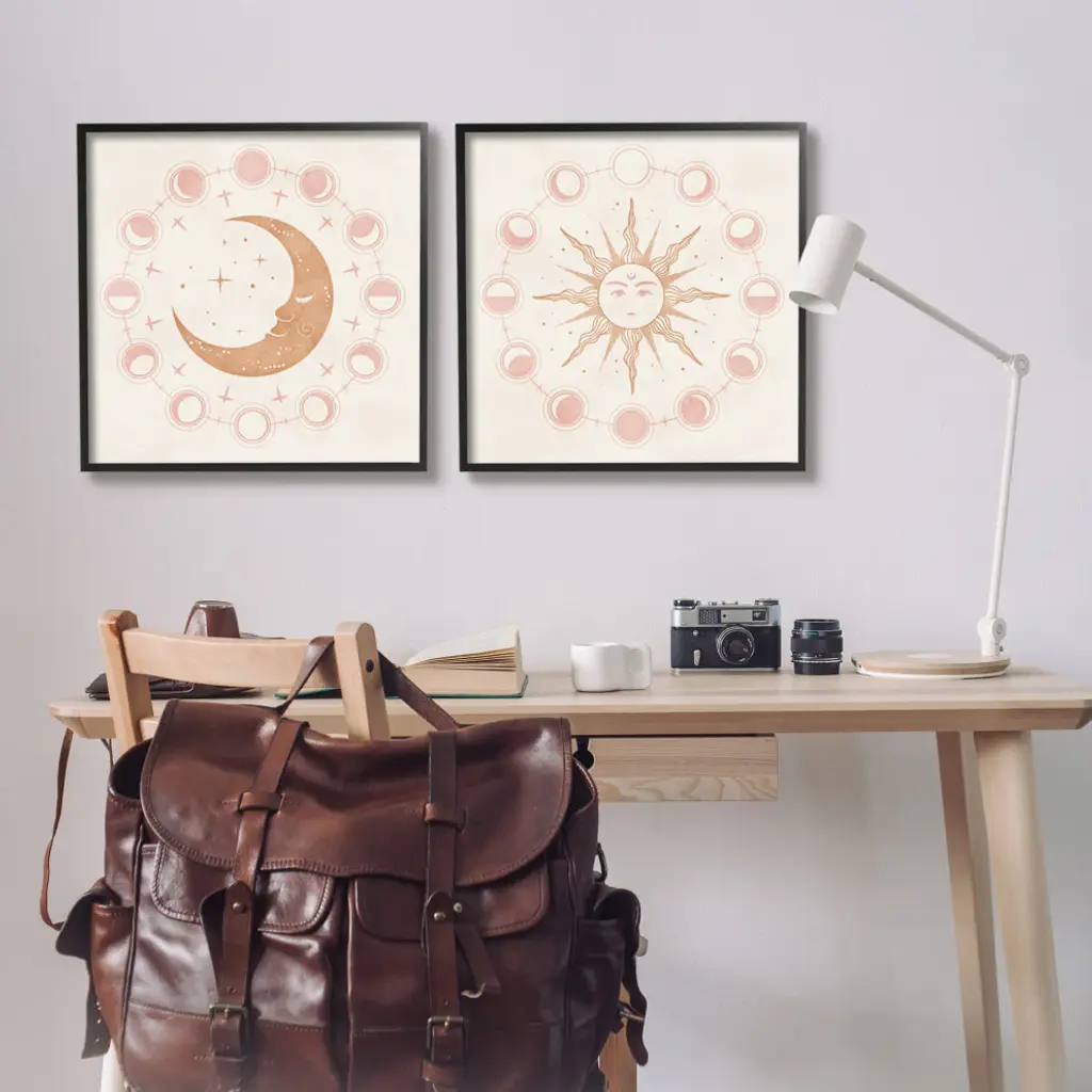 Celestial Sun Moon Phases Astrology Illustration, 2Pc, Each 24 X 24