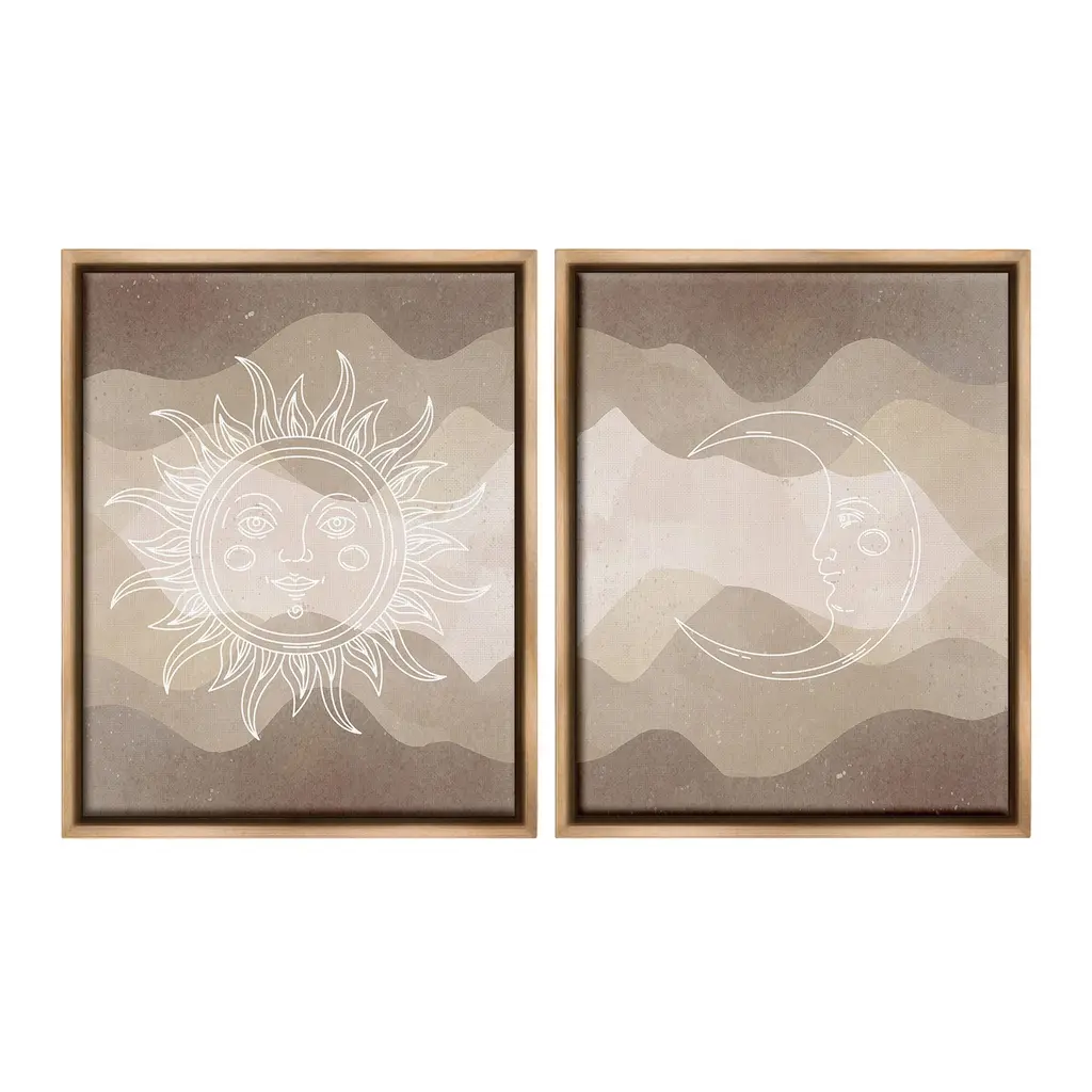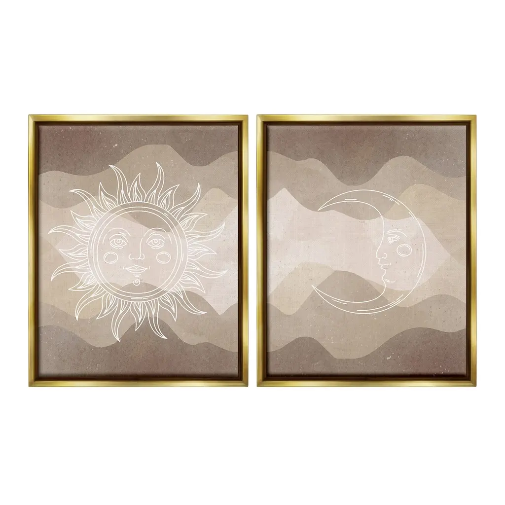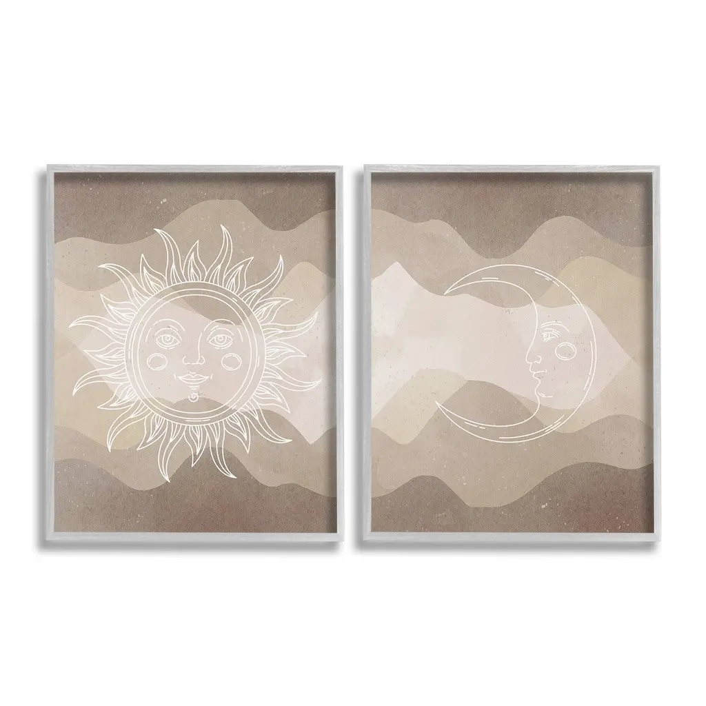 Celestial Sun Moon Phases Astrology Illustration, 2Pc, Each 24 X 24