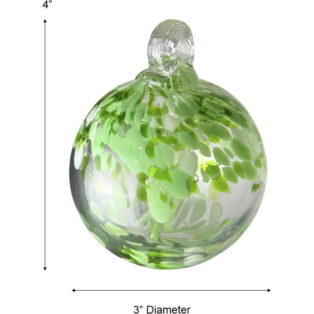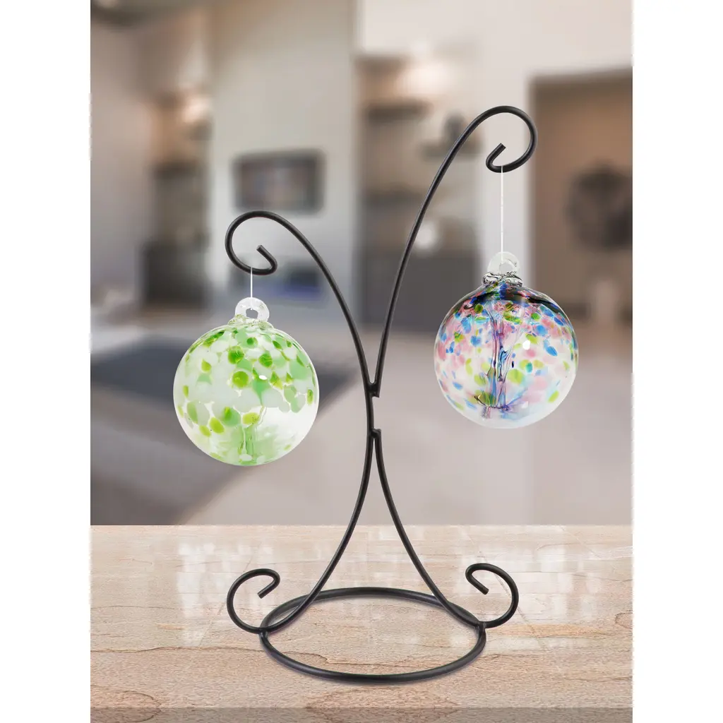 At Dale Tiffany, we strive to keep abreast of the latest home decor trends. As a result, we are pleased to present our Tree of Life Collection. The collection features an impressive array of Hand Blown Art Glass Ornaments in a variety of sizes and colors to suit every taste and decor. They are an effortless way to add a splash of color to any home, inside and out. Each Ornament is painstakingly hand blown using Favrile Art Glass. Each Ornament includes a clear glass loop at its top to facilitate hanging in any of the available stands, hangers, and garden stakes. Our hand blown process embeds color within the glass itself, which means that no 2 pieces are exactly alike and ensures yours are a dazzling one of a kind 3-dimensional art piece you will proudly display in your home or garden for many years to come. Due to the nature of handcrafted art glass, colors, sizes and patterns may vary slightly. (Stand or Metal Hanger Not Included) "Celtic" a beautiful blending of white and various shades of green against a clear glass background that creates a floral field throughout the surface of the glass. Also available in 3 (2PK), 4", 6, and 8 diameters.
