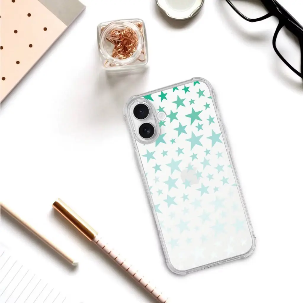 Centon Iphone 16 'aqua Rainbow Star' Printed Plus Case Tough Edge - Clear: Tpu Material, Abstract Design