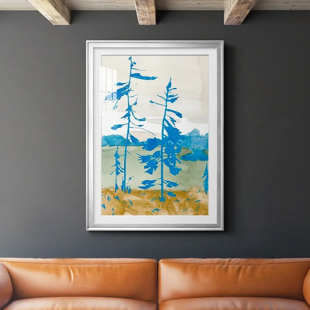 Cerulean Spruce I Premium Framed Print - Ready to Hang A Premium Framed Print created to last. Framed in distressed wood and available in an array of sizes and colors Featuring a beveled a solid wood stretcher bar, each piece comes ready to hand 4 SIZES AVAILABLE 30.5''X42.5'' - Overall Size 26.5'X36.5'' - Overall Size 22.5''x30.5'' - Overall Size 18.5''x24.5'' - Overall Size Each piece is made to order. Each piece comes with hanging hardware. Made in the USA Ready to Hang Giclee Paper Print Acrylic Glass Beveled Matt Board