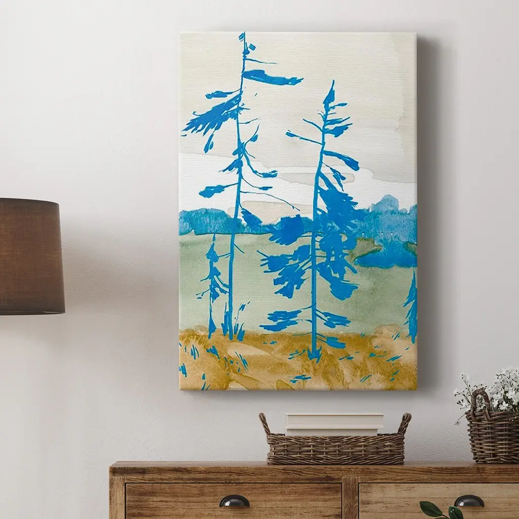 Cerulean Spruce I Premium Gallery Wrapped Canvas - Ready to Hang A premium hand stretched gallery wrapped canvas print created to last. Featuring a beveled a solid wood stretcher bar, each piece comes ready to hand 6 SIZES AVAILABLE 8''X12'' - Overall Size 12''X18'' - Overall Size 18''X27'' - Overall Size 24''x36'' - Overall Size 32''x48'' - Overall Size 40''x60'' - Overall Size Each piece is made to order. Built to Last Each piece comes ready to hang Solid wood stretcher Fade and Water resistant Made domestically