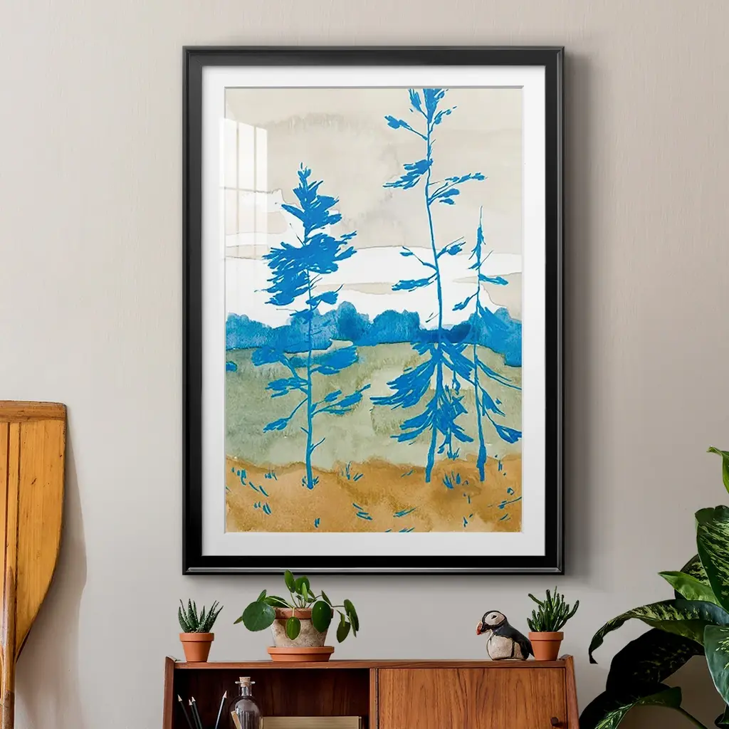 Cerulean Spruce II Premium Framed Print - Ready to Hang A Premium Framed Print created to last. Framed in distressed wood and available in an array of sizes and colors Featuring a beveled a solid wood stretcher bar, each piece comes ready to hand 4 SIZES AVAILABLE 30.5''X42.5'' - Overall Size 26.5'X36.5'' - Overall Size 22.5''x30.5'' - Overall Size 18.5''x24.5'' - Overall Size Each piece is made to order. Each piece comes with hanging hardware. Made in the USA Ready to Hang Giclee Paper Print Acrylic Glass Beveled Matt Board