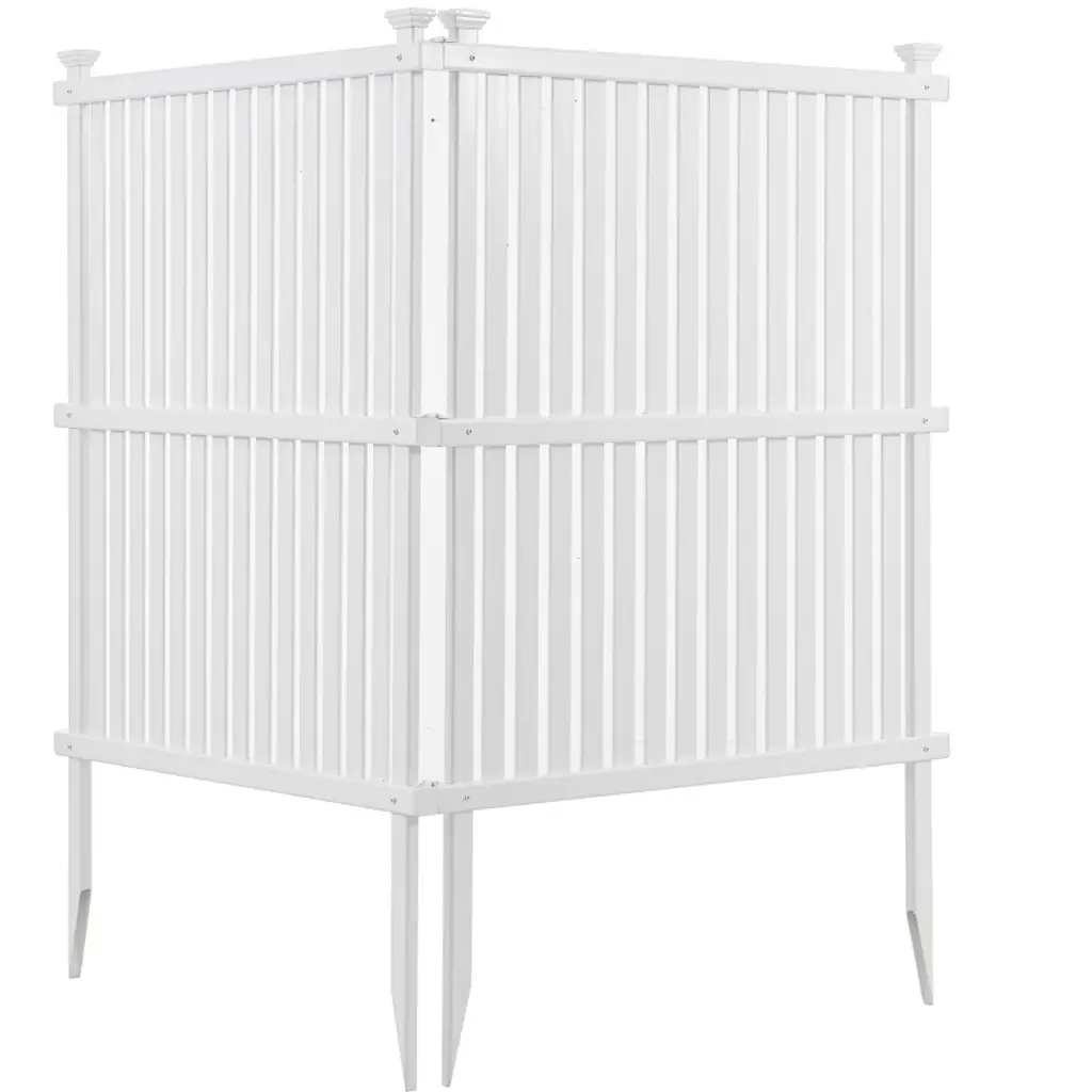 Enhance your outdoor space with this L-shaped privacy fence screen set, featuring two durable vinyl panels measuring 36" W x 48" H each. Designed for versatility, the panels are ideal for concealing unsightly items like AC units, trash bins, or pool equipment, and can also serve as decorative garden or pet fences. Crafted from weather-resistant, rust-proof vinyl, these panels require no painting or staining and are built to withstand the elements. Easy to install and low-maintenance, they offer both privacy and visual appeal for any yard or patio.