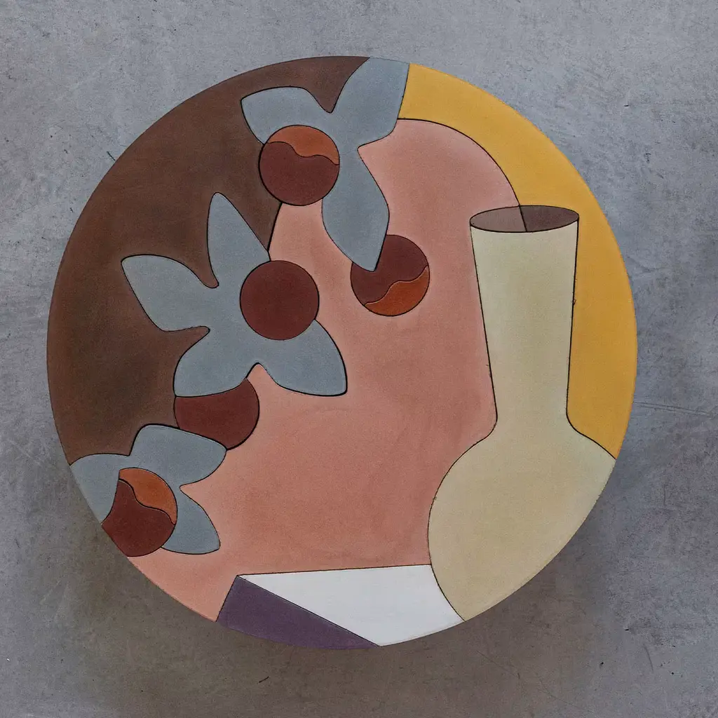 Cezanne Round Concrete Painting is one of the three material paintings designed by Serena Confalonieri. The three paintings are characterized by a strong dialogue with the European artistic tradition of still lives, of which Cézanne, who inspired the names of the creations, is a masterful interpreter.