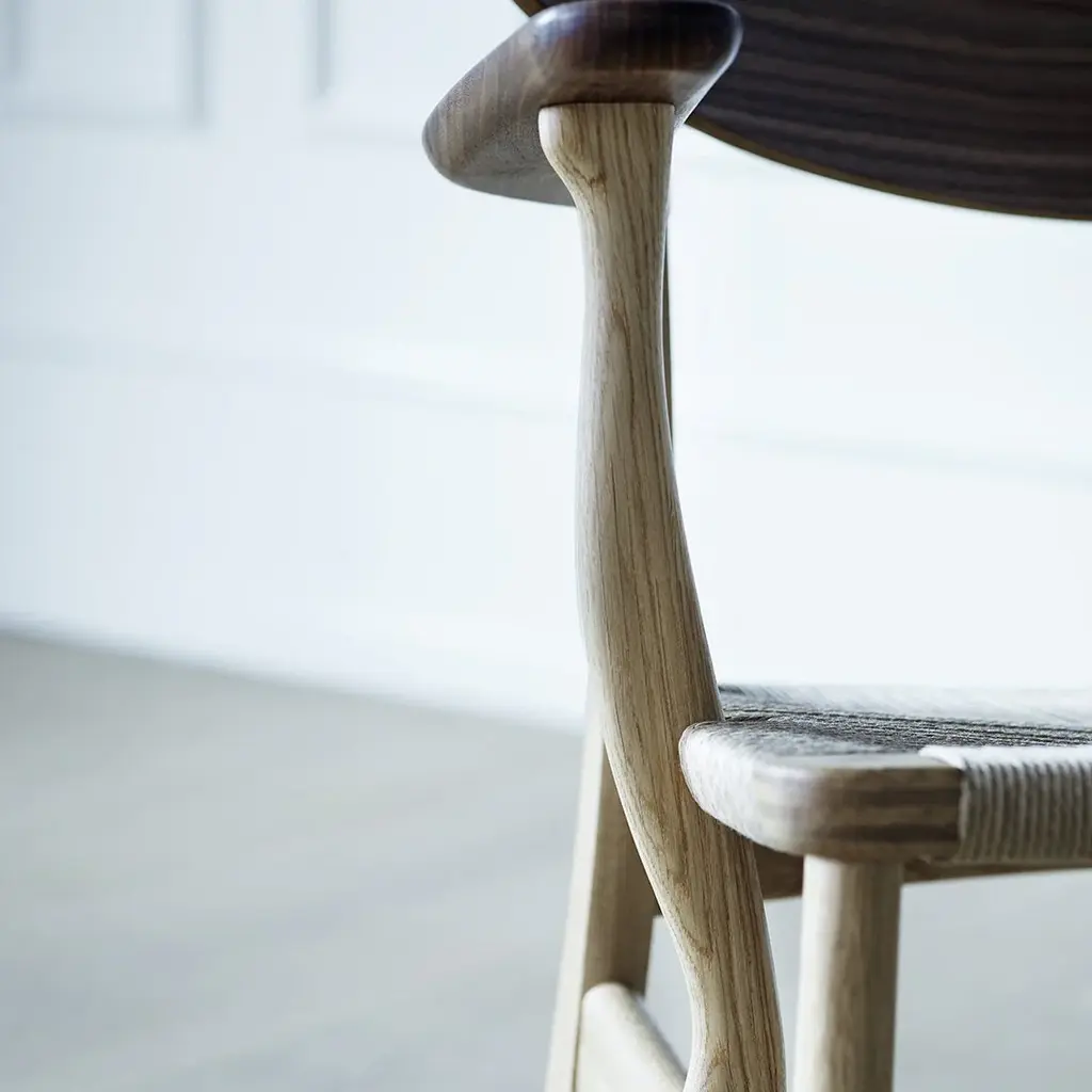 Wegner's CH22 lounge chair is part of a debut four-chair collection which also included design icons such as CH24 - better known as the Wishbone Chair - which has become a design classic around the world. The CH22 lounge chair has been produced in exact accordance with Wegner's original sketches, and unites simplicity with absolute comfort. The low lounge chair is made of solid wood with a distinctive form-pressed veneer back with an organic shape. Wegner has focused on sublime craftsmanship, as evident in the woven seat and the refined and ingenious joints, which are structural and ornamental at the same time - a classic Wegner trait. NOTE: Oak/walnut is a mix version combined with a frame in oak and armrest/backrest in walnut. "Cover Cap" refers to the covering on the back seat rest.