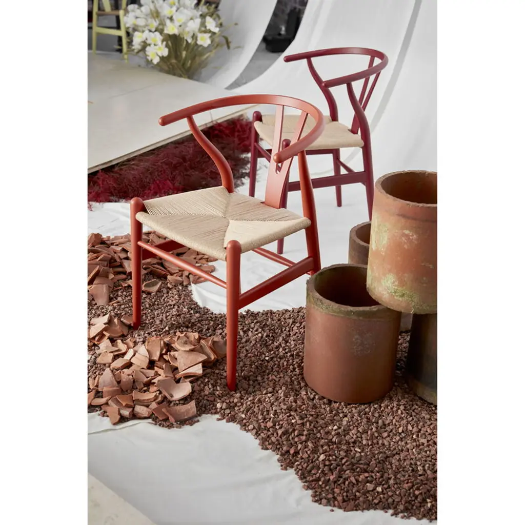 To celebrate the more than 70 years of the CH24 Wishbone collection, Carl Hansen & Søn asked designer Ilse Crawford to design nine new colors for the iconic chairs. Crawford created a soft yet intense color palette inspired by the expressionist paintings of the renowned Danish artist Per Kirkeby and the raw beauty of the Nordic landscapes, plants and soil. The eco-friendly, water-based matte colors are launched one by one during 2022. The CH24 chair, also known as Wishbone, is a true Danish design classic. Designed by Hans J. Wegner in 1949, the Wishbone chair has been produced by Carl Hansen & Søn since 1950. When designing the CH24 chair, Wegner wanted to combine the backrest and armrests into one single piece. To support the steam-bent top, he developed the classic Y-shaped back, which earned the chair the name Wishbone. The end result was an elegant and graceful chair with seating comfort in a class of its own. The manufacturing process of the Wishbone chair involves more than 100 steps, most of which are still made by hand. The hand-woven seat alone takes a skilled craftsman about one hour and 120 meters of paper cord to make. The carefully finished Wishbone is a masterpiece of traditional craftsmanship and Danish design.