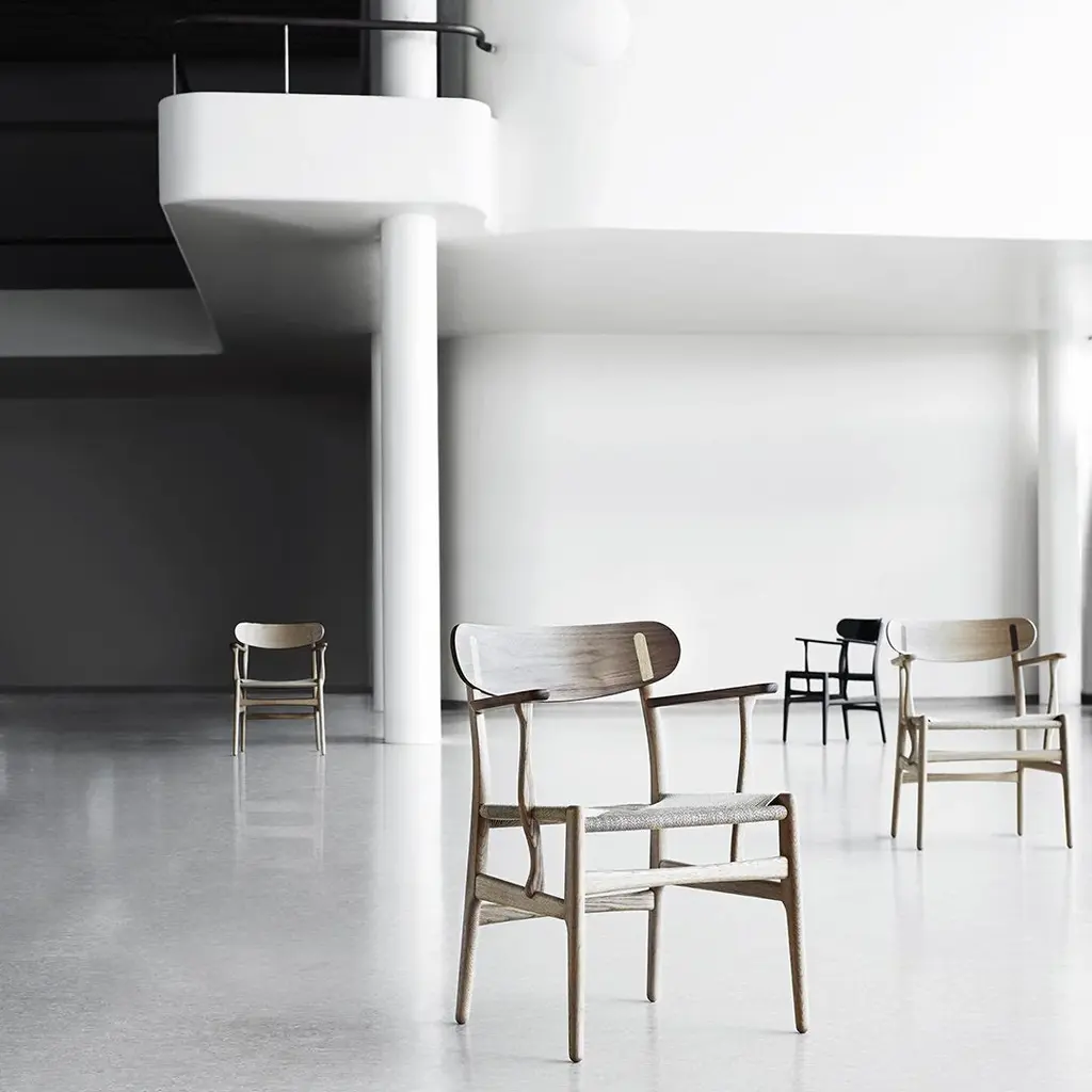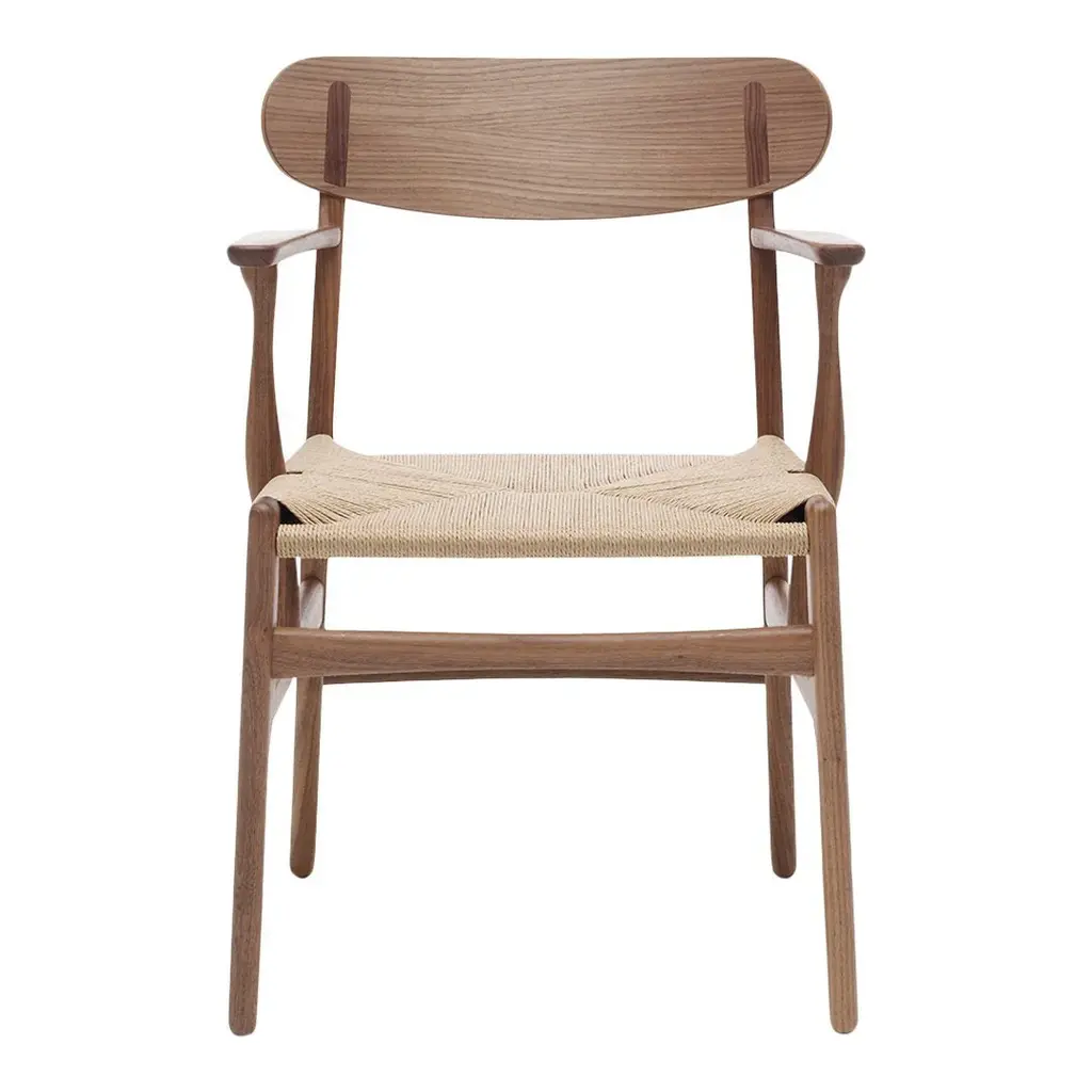 Carl Hansen & Søn has breathed life into Hans J. Wegner's previously unknown CH26 dining chair design from 1950. The CH26 chair has finally been brought to life in line with Wegner's original sketch. Its curved organic shapes and exceptional craftsmanship make it a true Wegner classic. NOTE: Oak/walnut is a mix version combined with a frame in oak and armrest/backrest in walnut. "Cover Cap" refers to the wood cap on the back seat rest.