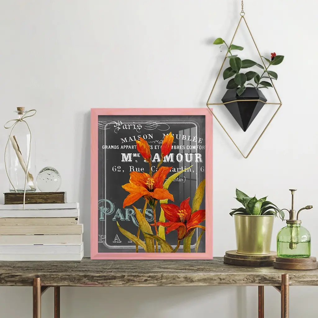 Chalkboard Paris I -EZ SWITCH Framed Print w/glass-Cherry Red A delightful, framed print. Featuring a solid wood frame with real wood glass. This premium print is giclee quality. In addition, every frame features a removable back and table top stand. This allows you to change your art in the future or to just stand the art on a table for a new look. We are sure you'll enjoy our new series of EZ SWITCH Framed Art. Solid Wood Frame Real Glass Removable / Replaceable Art Built in Tabletop Stand Sizes range from 4x6 up to 12x15 - buy just one or pair them up as sets as you see fit.