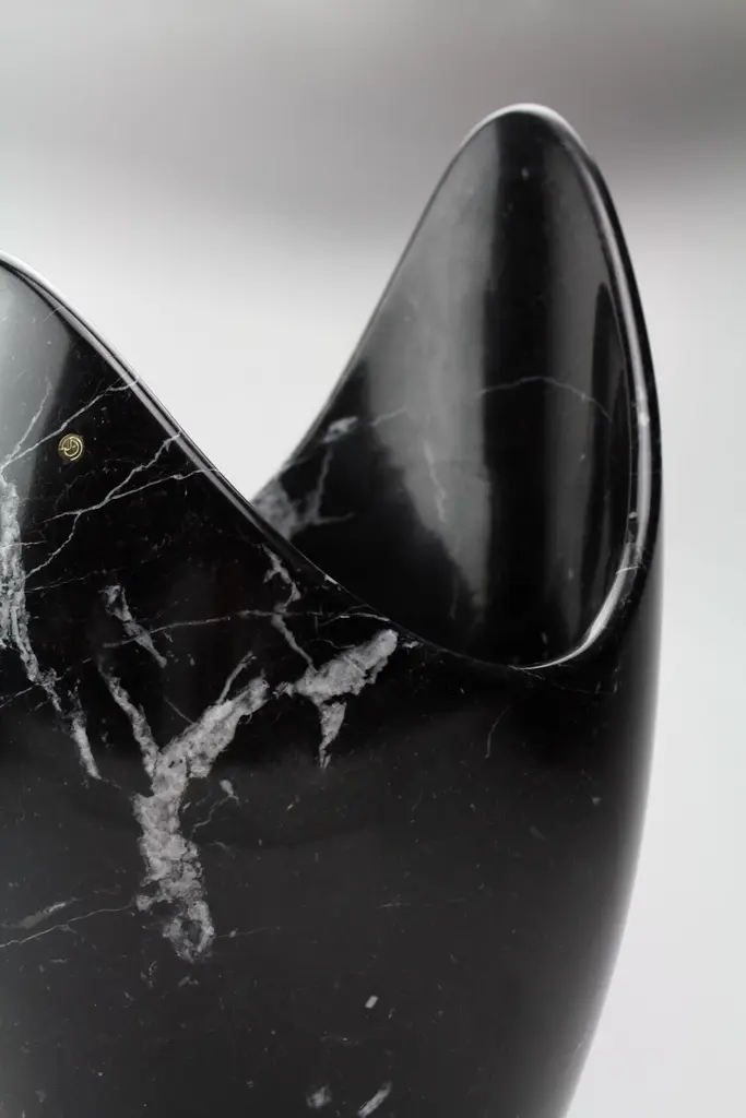 Luxurious and big Champagne bucket sculpted by hand from a solid block of Marquinia marble. Polished finishing. Champagne bucket dimensions: D 26, H 41 cm. Available in different quartzite, onyx and marbles.Limited edition of 50.Each champagne bucket is hand signed and numbered by the artists (engraved), 100% handmade in Italy and comes with a "Certificate of Authenticity".Marble is a natural material, every piece is unique as each marble block is different in veins and color shades. All of our creations are handmade by Italian artisans and can slightly vary in shape and size. This is to be considered as a guarantee of a handmade object. All Pieruga objects are made of precious and natural marbles and onyx. Marble is sensitive to acid-based liquids, especially a prolonged contact with substances such as wine, lemon, vinegar, fruit juices, cola and alcohol can stain the surface.Cleaning should be carried out with a soft sponge, water and neutral detergent. Do not use metallic or abrasive sponges, do not wash in the dishwasher, do not use in the microwave. The color of the marble after washing can undergo variations due to the humidity trapped in the surface’s micro-pores. Once fully dried it will regain its original color. The brass inlays tend to oxidize over time, to make them return to shine again use a soft cotton pad soaked in a solution of water and traditional Marseille soap, gently rub over the brass inserts and rinse the surface thoroughly. We are against the use of chemical products, all Pieruga objects are processed and polished through long manual processes without the use of polishing liquids.Pieruga proudly creates elegant accessories and complements in marble through artisanal processes, bringing into dialogue ancient techniques of sculpture with advanced technologies. 100% handmade in Italy.Our Mission is a clear Signal of opposition to the enormous waste that occurs in the extraction and processing of large blocks of marble, tons of material are discarded and thrown, in disfigurement to the generosity of our mountains.Rediscovering the ancient art of manual sculpture we give new life to even the smallest fragment of marble, bringing to light its millenary beauty that is lost in more than 2000 years of architecture and sculpture.Pieruga marble is a new brand by Barberini & Gunnell.The Atelier Barberini & Gunnell was founded by the architects and designers Francesco Barberini and Nina A. Gunnell The artworks by Barberini & Gunnell are regularly shown at international art fairs, such as PAD London, PAD Genève, PAD Monaco, Salon Art + Design New York, Art Miami.IMPORTANT INFORMATION REGARDING SHIPPING:We carefully pack all artworks in strong wooden crates to ensure safe transport. This service is done directly in our atelier and is complimentary. All of our artworks travel with a shock watch system in order to monitorate rough handling by shippers and movers.