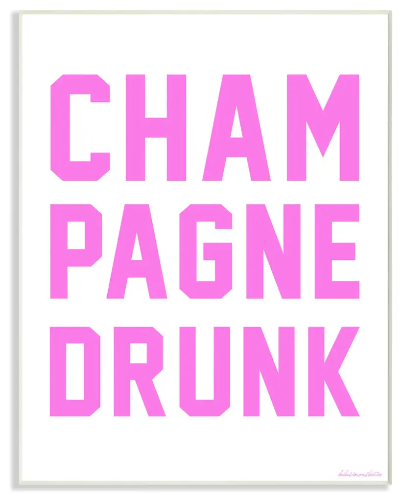 Champagne Drunk Varsity Lettering Stretched Canvas Wall Art, 24x30