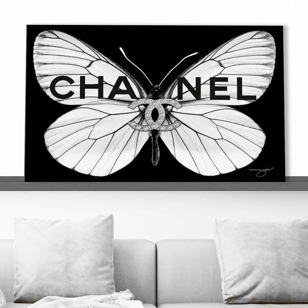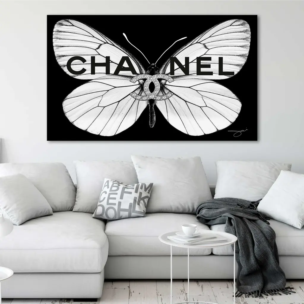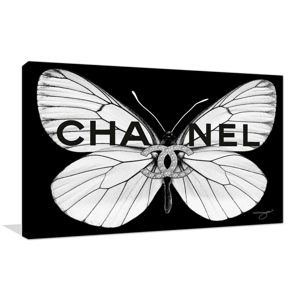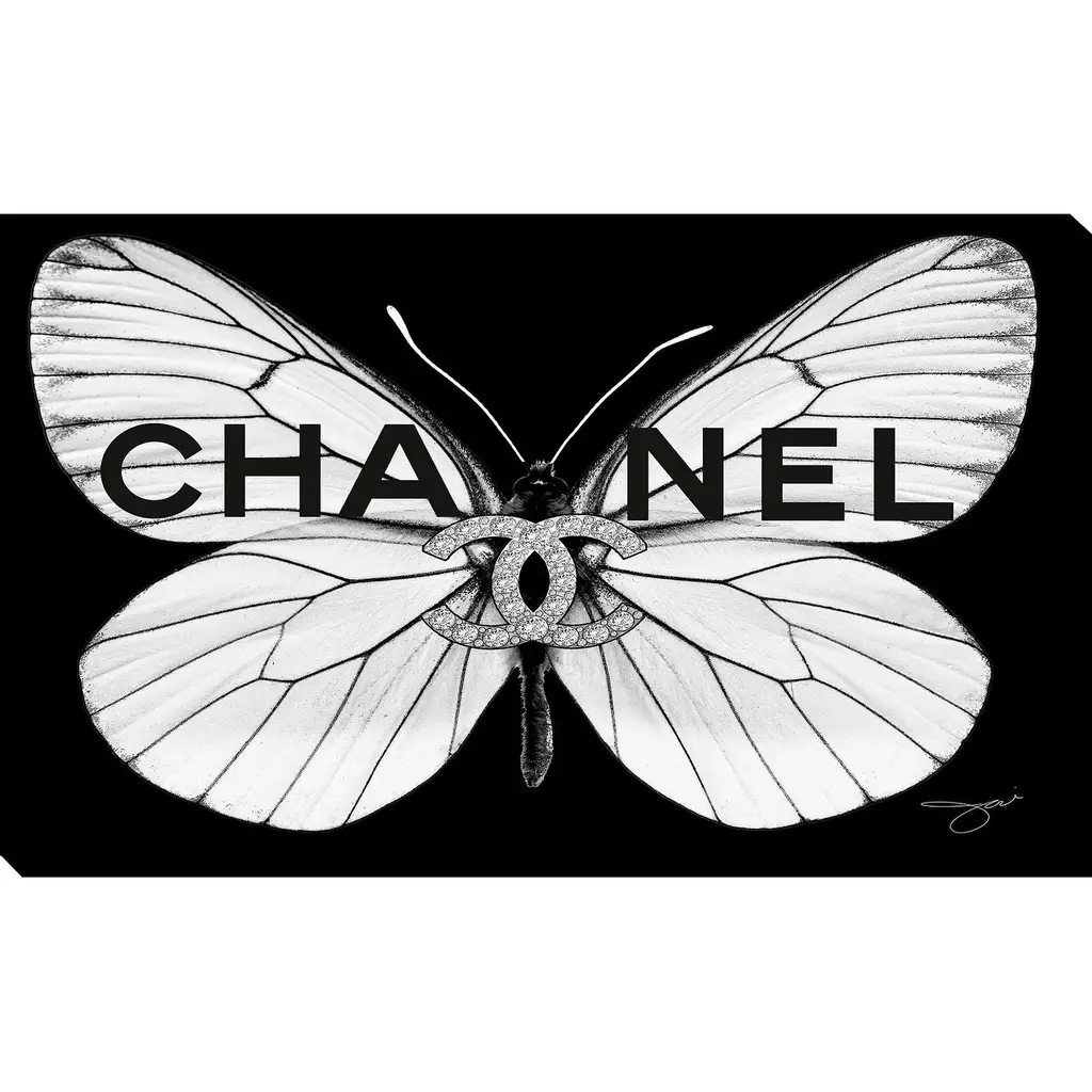 "Chanel White Butterfly" By Jodi Print On Canvas - 18 X 30