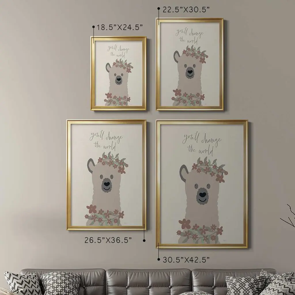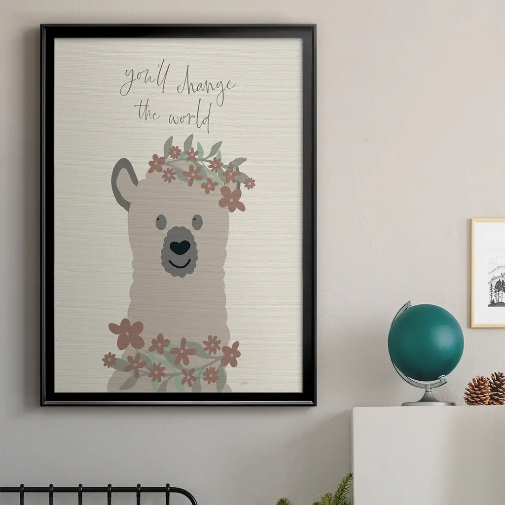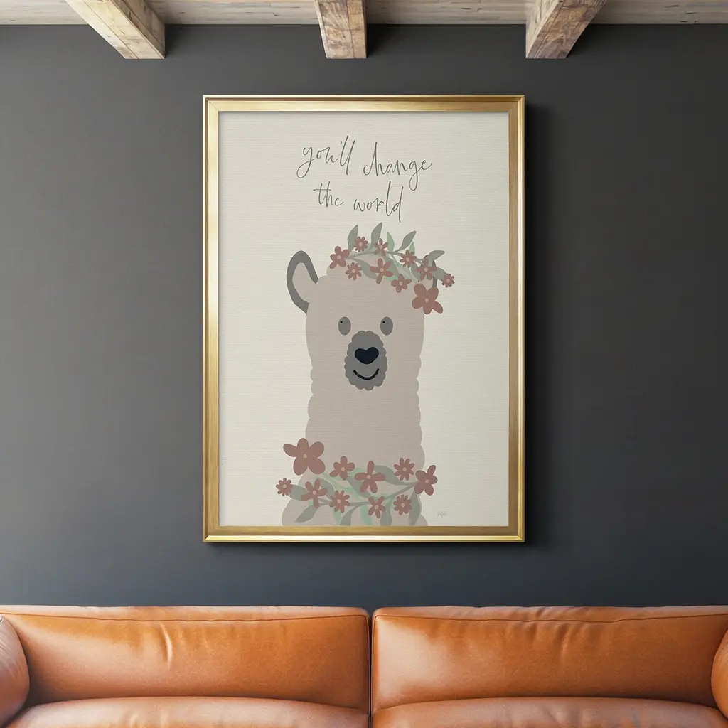 Change The World Premium Framed Print - Ready to Hang A Premium Framed Print created to last. Framed in distressed wood and available in an array of sizes and colors Featuring a beveled a solid wood stretcher bar, each piece comes ready to hand 4 SIZES AVAILABLE 30.5''X42.5'' - Overall Size 26.5'X36.5'' - Overall Size 22.5''x30.5'' - Overall Size 18.5''x24.5'' - Overall Size Each piece is made to order. Each piece comes with hanging hardware. Made in the USA Ready to Hang