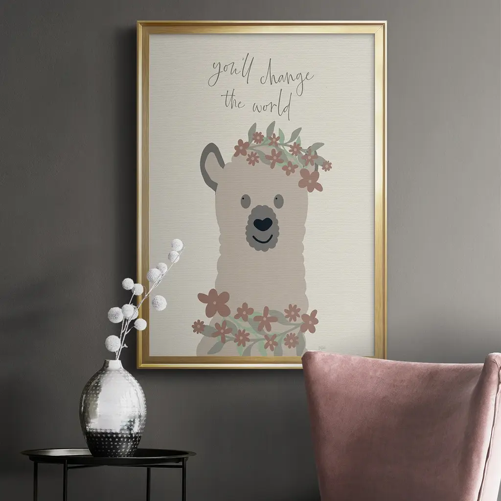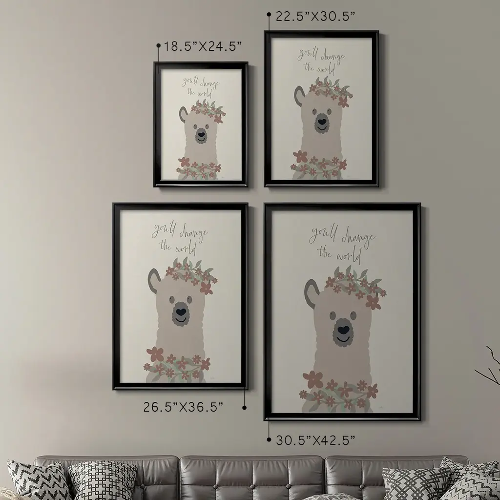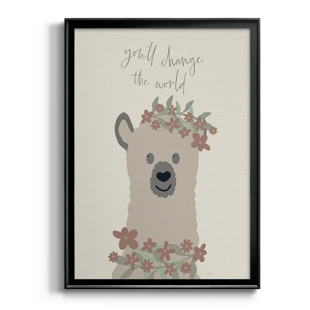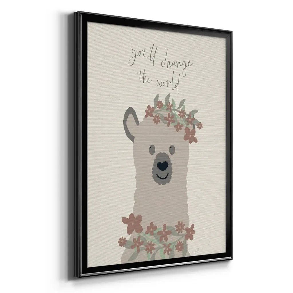 Change The World Premium Framed Print - Ready to Hang A Premium Framed Print created to last. Framed in distressed wood and available in an array of sizes and colors Featuring a beveled a solid wood stretcher bar, each piece comes ready to hand 4 SIZES AVAILABLE 30.5''X42.5'' - Overall Size 26.5'X36.5'' - Overall Size 22.5''x30.5'' - Overall Size 18.5''x24.5'' - Overall Size Each piece is made to order. Each piece comes with hanging hardware. Made in the USA Ready to Hang