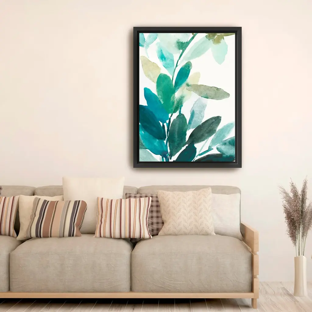 Bring the serene beauty of nature into your home with this exquisite botanical canvas art print. Featuring delicate leaves, this artwork evokes a sense of calm and tranquility, perfect for brightening up any space. Available in black frame, dark walnut frame and oak frames, or as a frameless canvas. Our Gallery Wrap Canvas Prints are proudly assembled with high quality materials in California, USA. Each piece is printed on a thick, archival grade canvas using Giclee technology. It is then hand-stretched by our experienced artisans over solid pine bars, which will not warp over time. The final product is a piece personally crafted for you to confidently display on your wall. Care and Assembly: Ensure that the location of your piece has little to no exposure to heat, sunlight, and moisture. Wipe clean, only if needed. Each piece includes a sawtooth hanger to hang on your wall vertically.